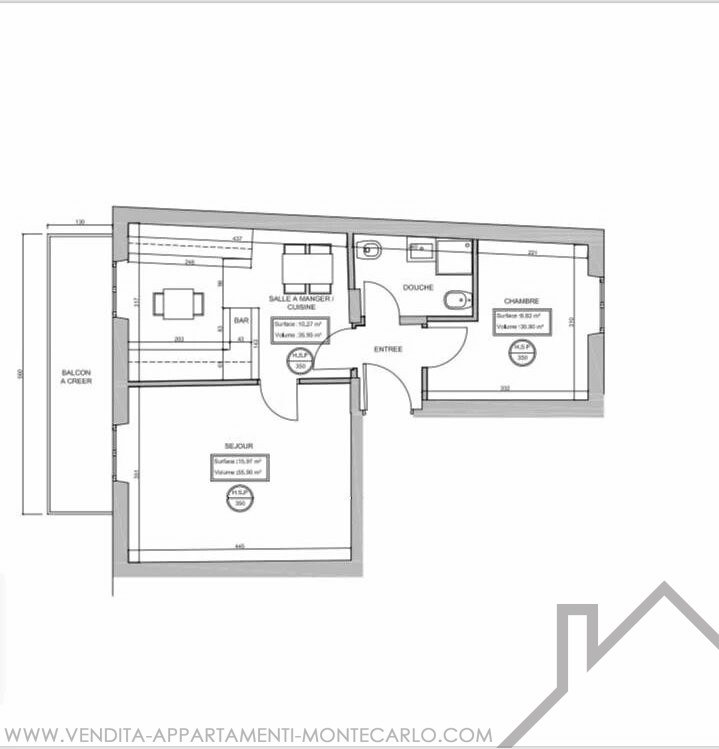 Superficie totale : 63 m²