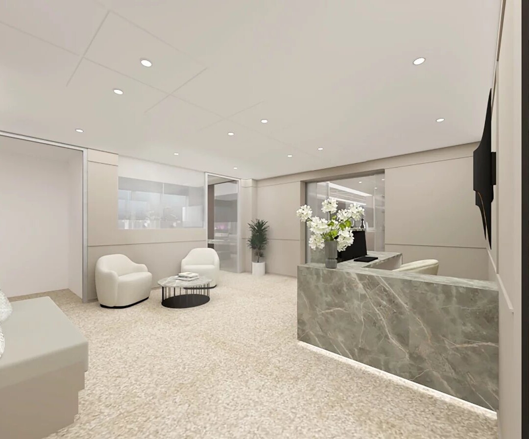 Si tratta di 18 uffici esclusivi di alta gamma con reception, cucina, tre bagni e una doccia.
