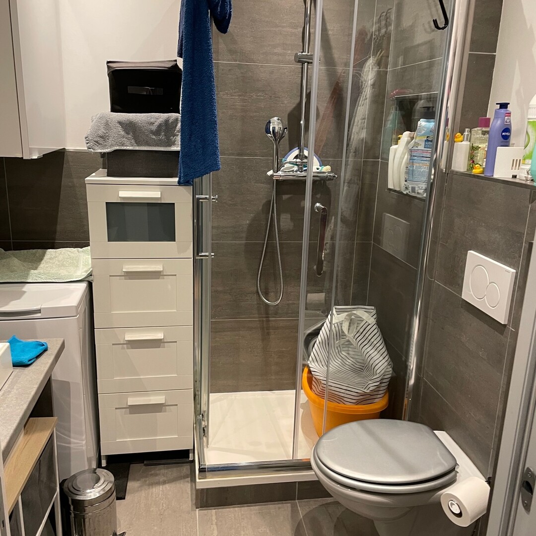 L'appartement se compose d'un salon donnant sur une petite terrasse  avec cuisine américaine, deux chambres, salle de douche complète, toilette invités.