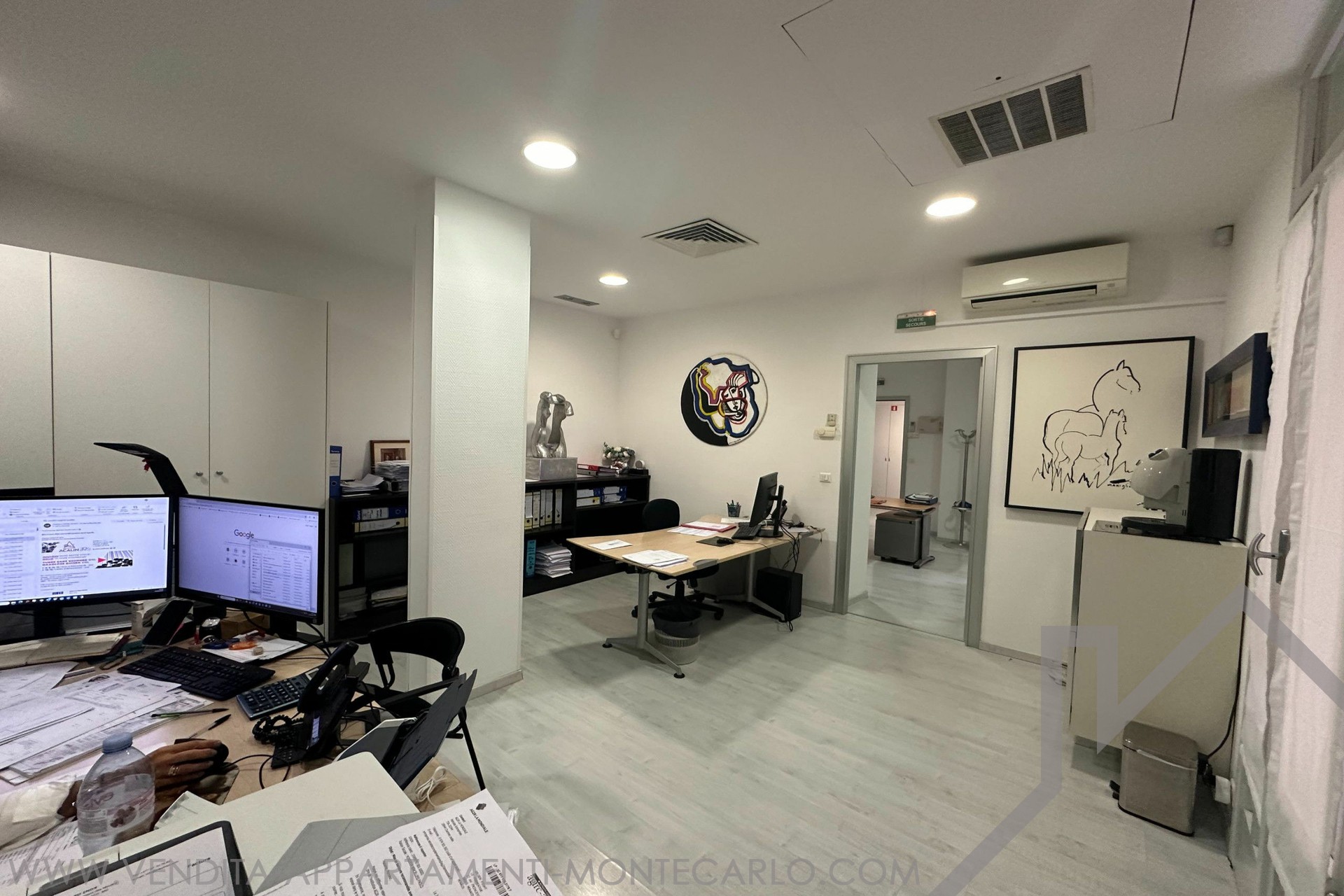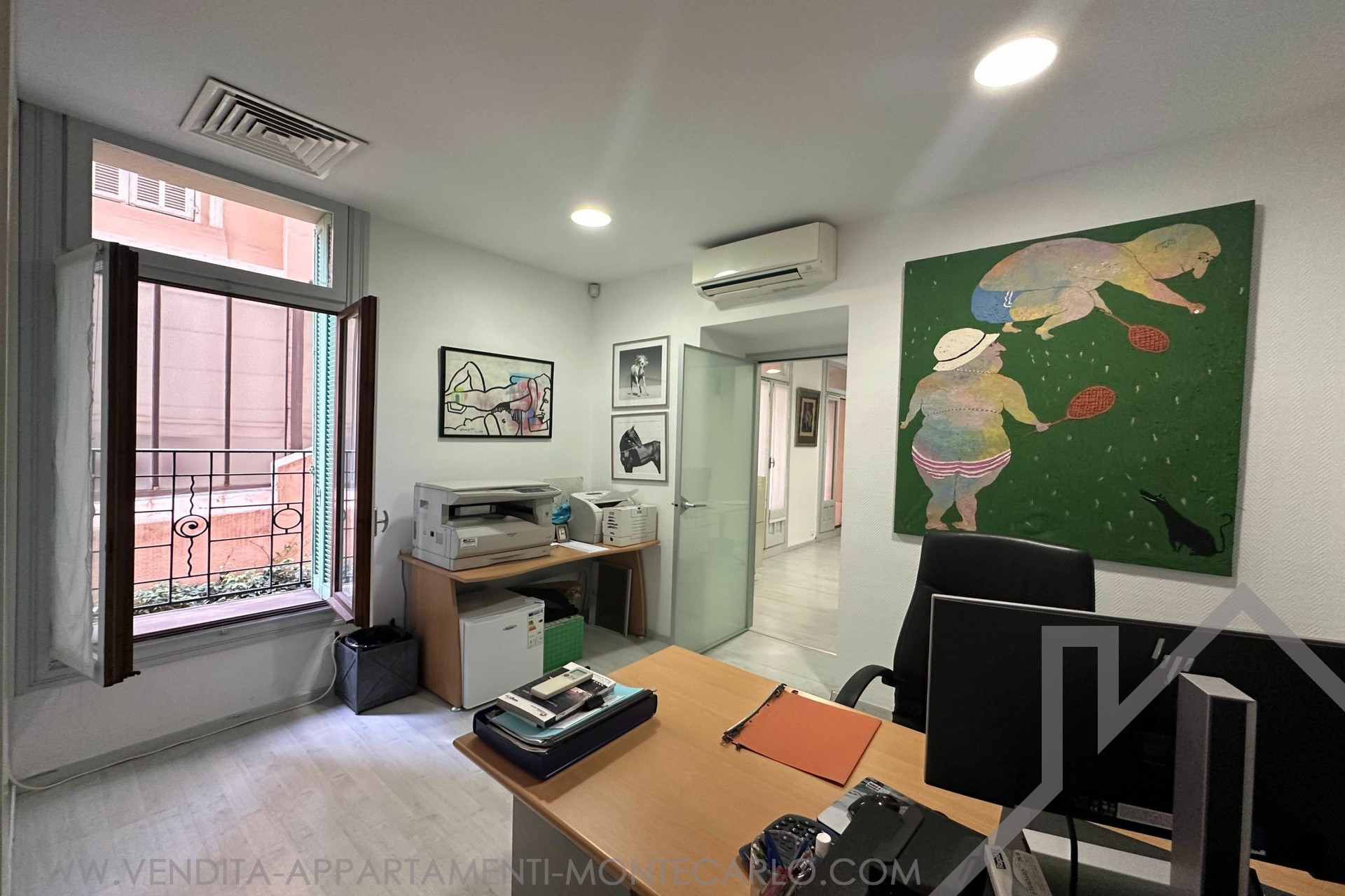 GRANDE UFFICIO di 4 locali in un edificio borghese, vicino a tutti i servizi, situato sul Boulevard des Moulins. Ha una superficie totale di 123 mq di cui 116 mq di superficie abitabile e una terrazza di 7 mq. Descrizione: 4 stanze, 1 stanza blindata con porta blindata, un bagno con doccia, WC e lavandino. Possibilità di trasformazione ad uso abitativo Libero rapidamente.