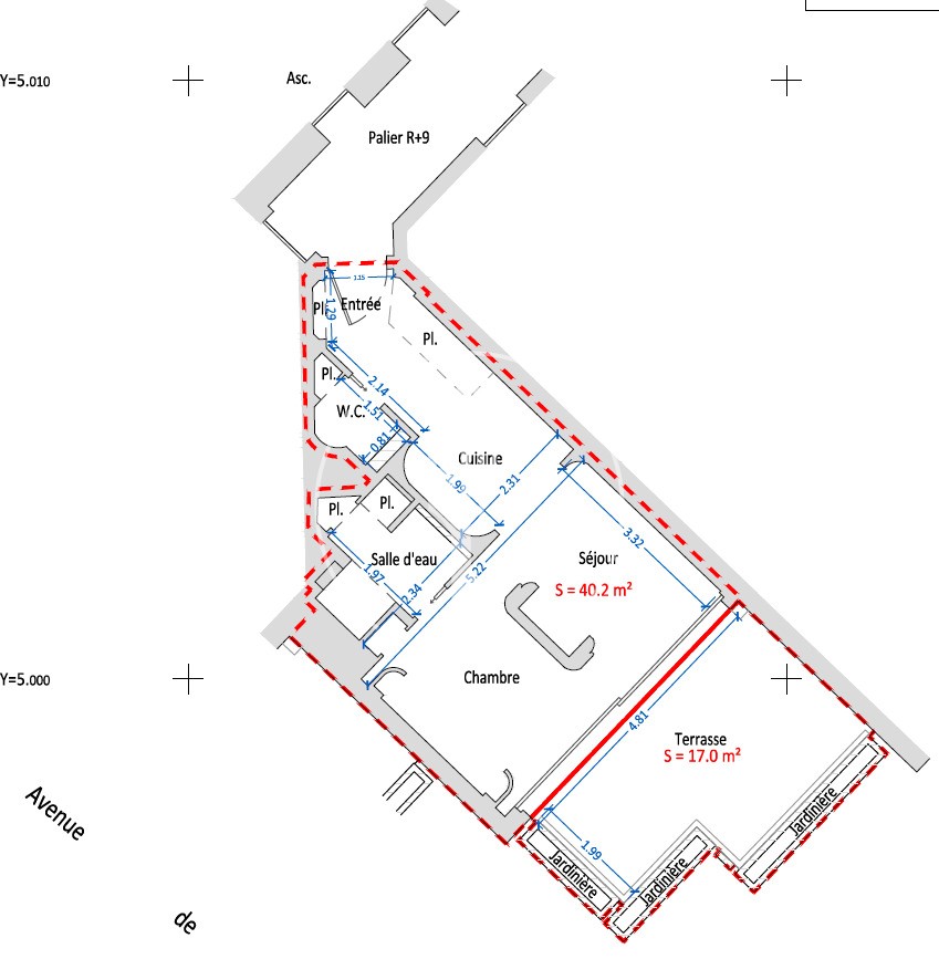 Superficie totale : 59 m²