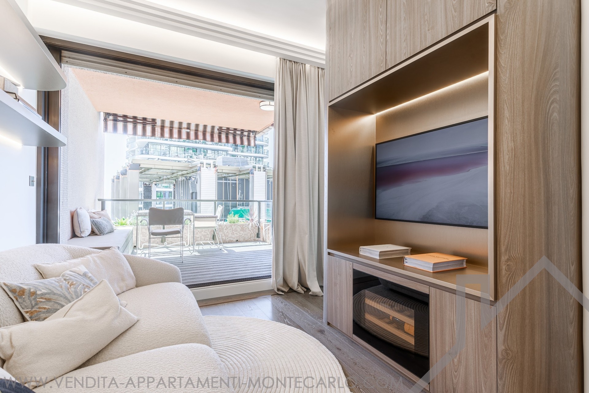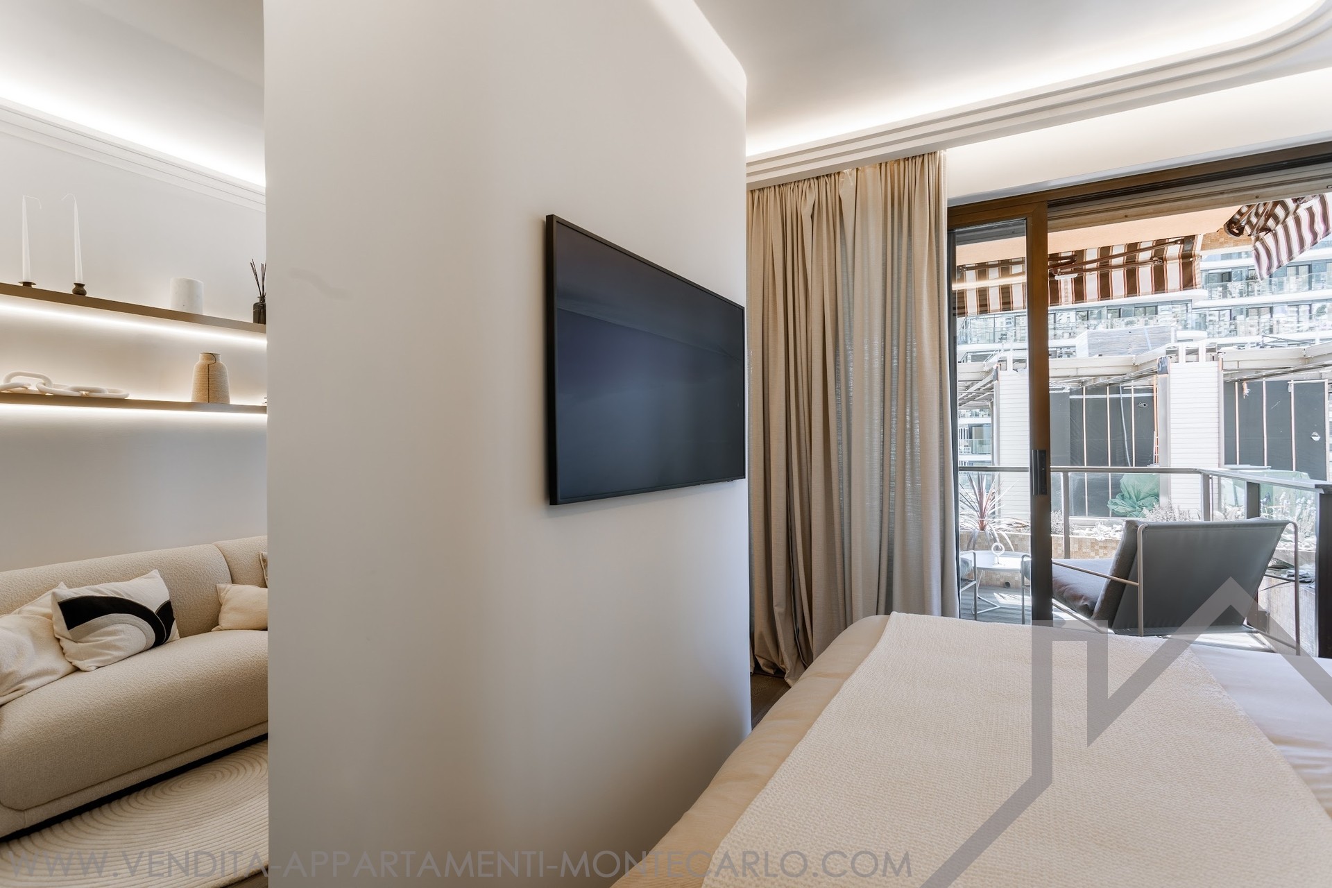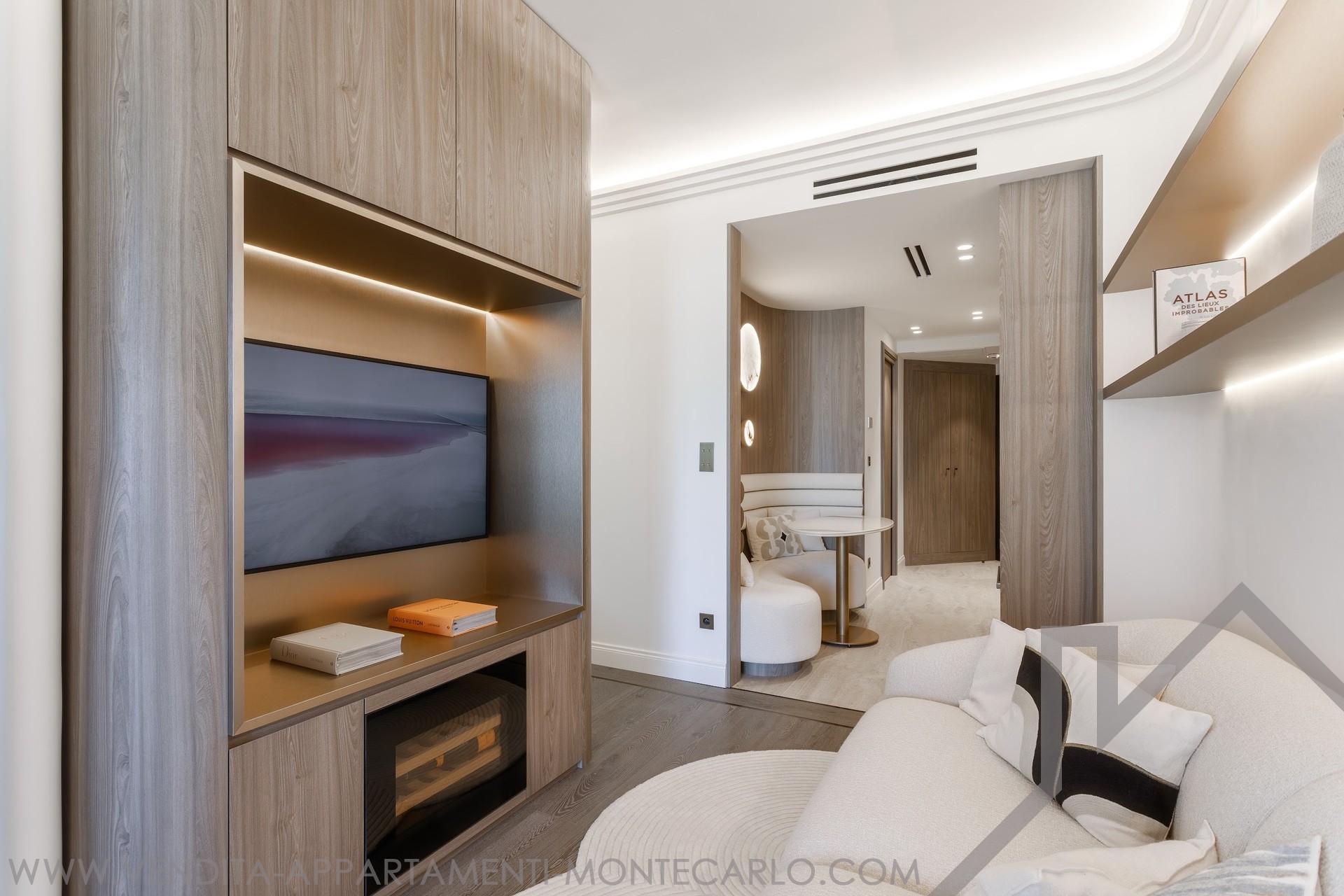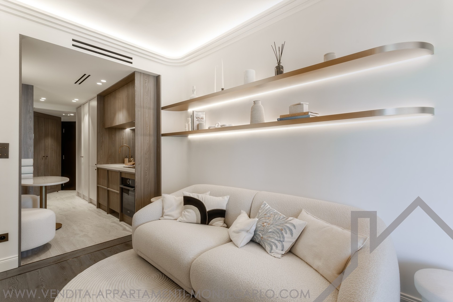 È composto da un ingresso con servizi igienici,  una cucina completamente attrezzata, un soggiorno con zona pranzo, 1 camera da letto con un bellissimo bagno con doccia. Il tutto si apre su una grande terrazza, dove è possibile mangiare, rilassarsi o semplicemente godersi la vista di Cap Martin, della Vigie e della città.