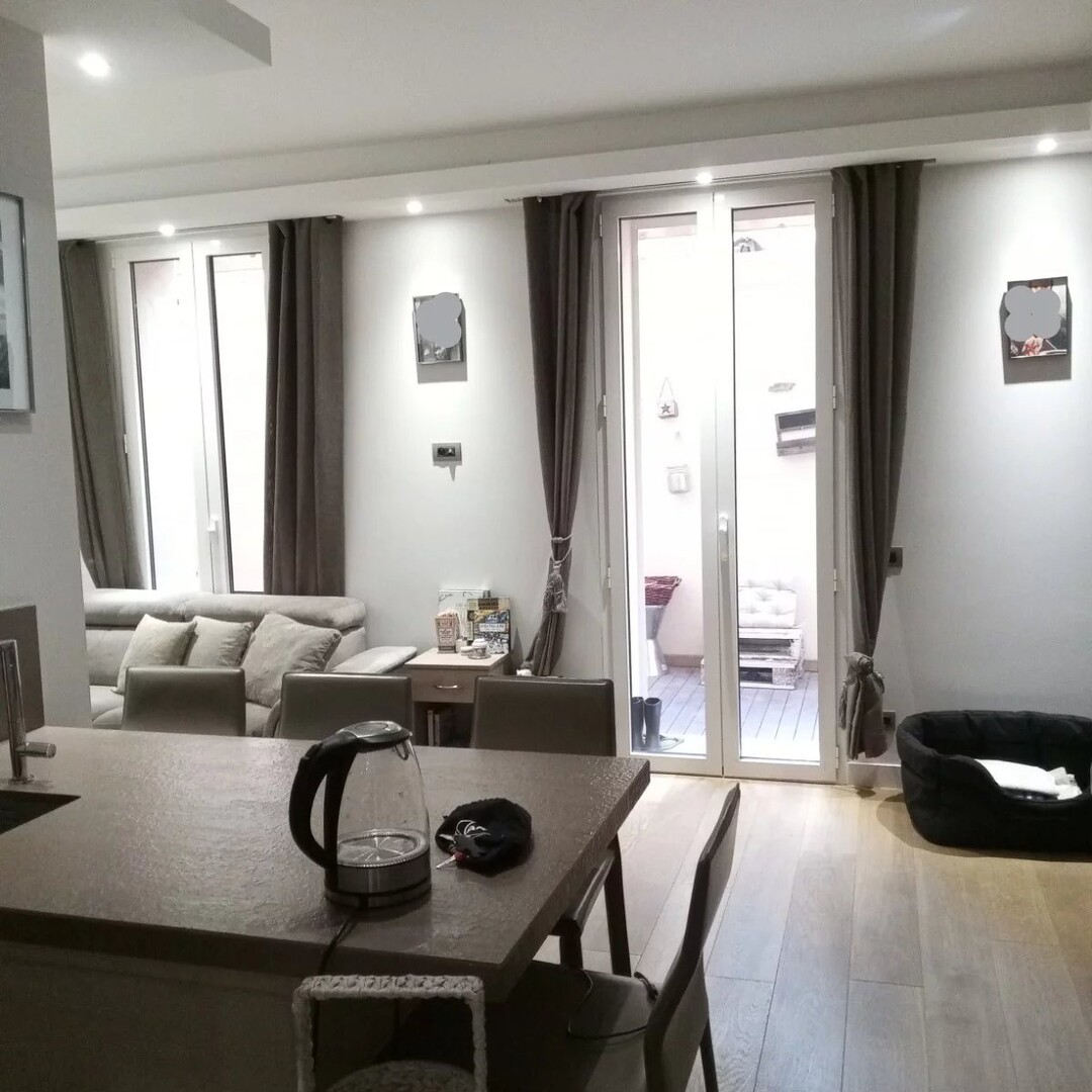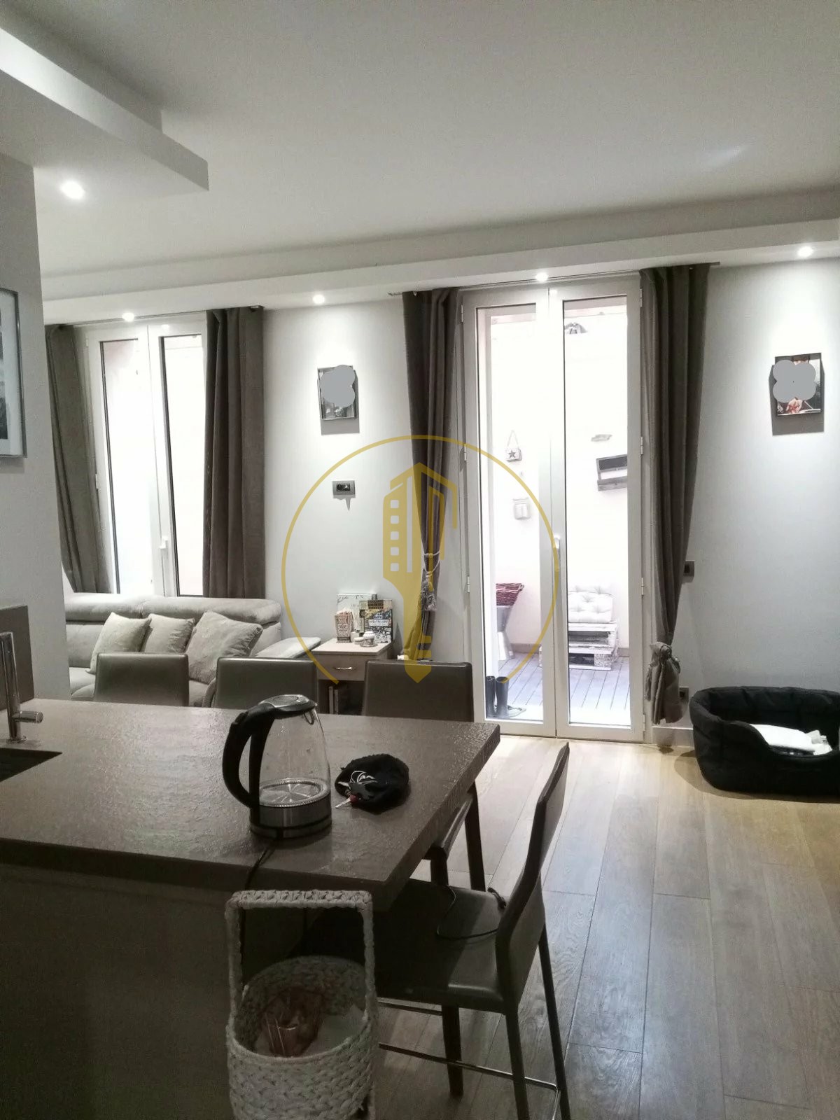 Appartement complètement renouvelé situé prêt du marché de la Condamine dans un immeuble bourgeois. Il se compose de: entré, cuisine complètement équipée donnant sur le séjours, 3 chambres dont 2 avec salle de bains en-suite, toilette invité avec douche. L'appartement bénéficie d'une terrasse de 35m² ou il se trouve un local buanderie. Charges faibles.