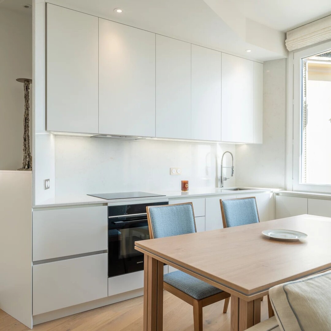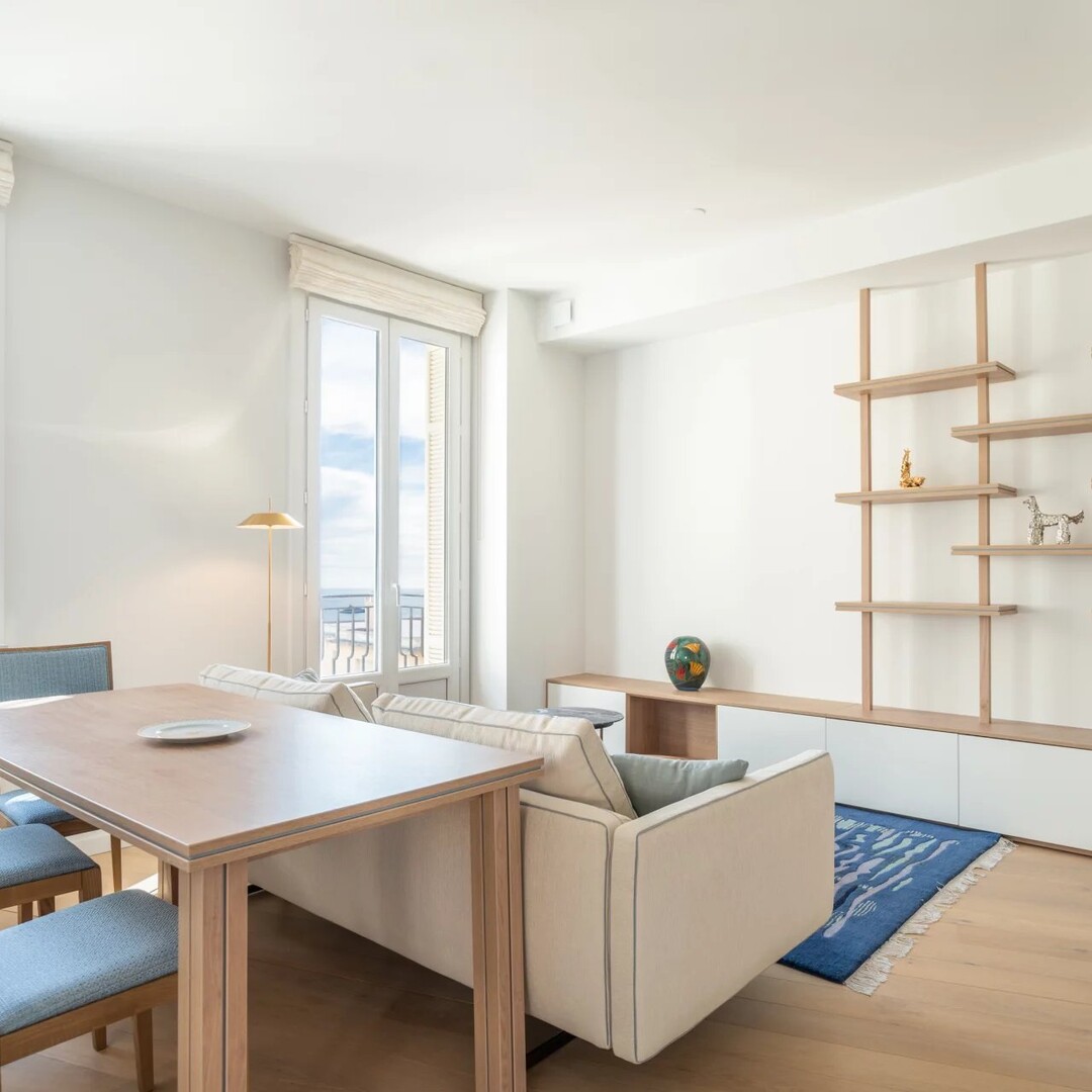 Con 55,8 mq di superficie abitabile e 3,4 mq di balconi, questo affascinante bilocale, completamente ristrutturato e arredato, al 4° piano, gode di vista sul mare e di molta luce naturale.
