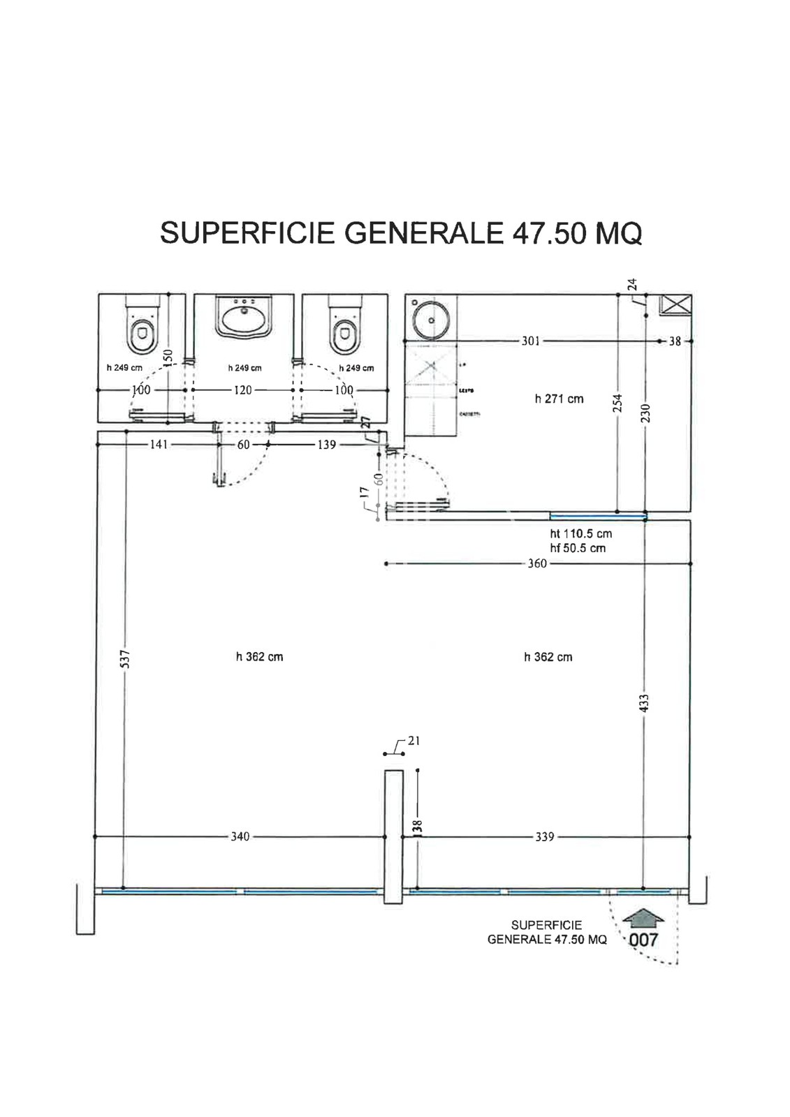Superficie abitabile : 47.5 m²