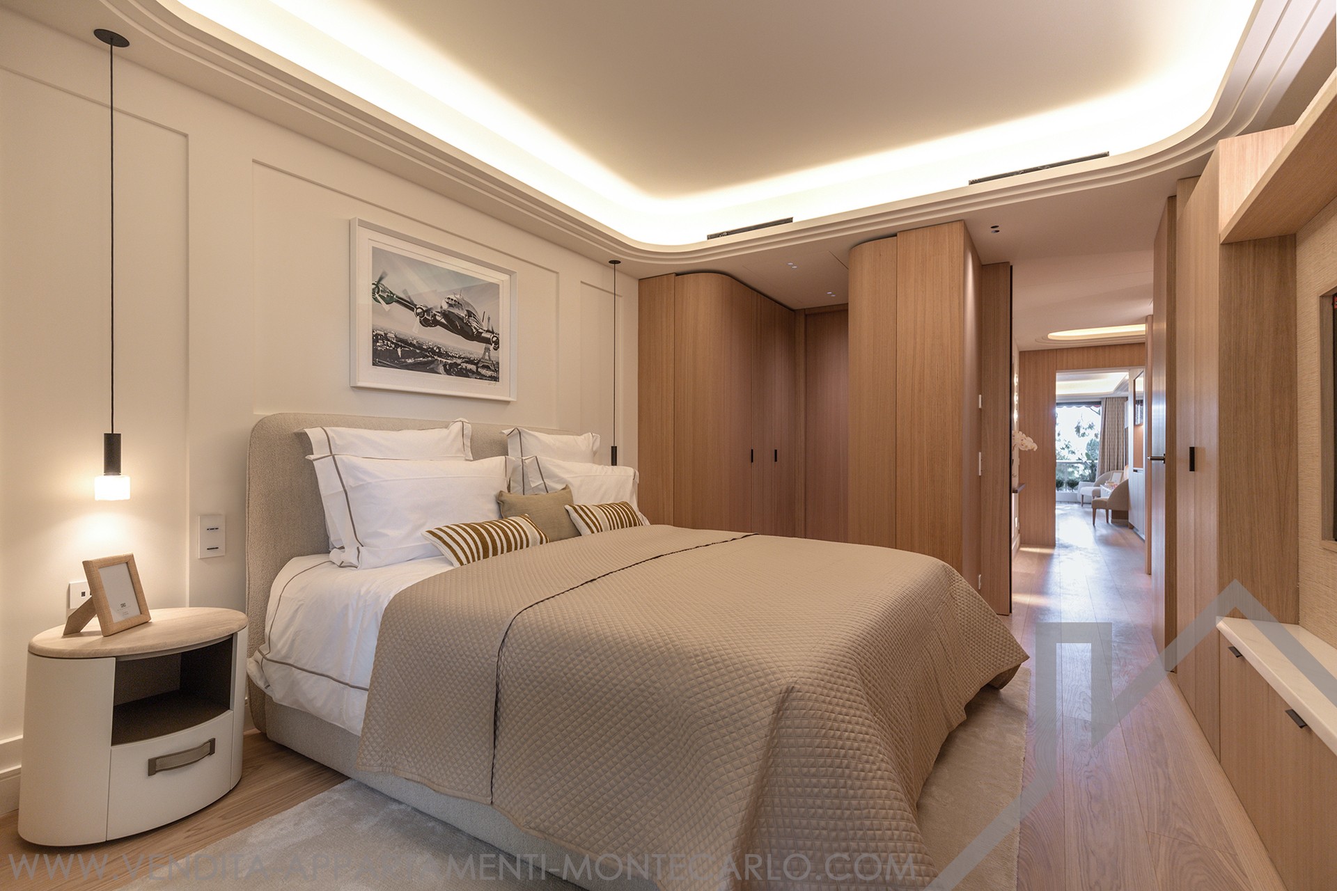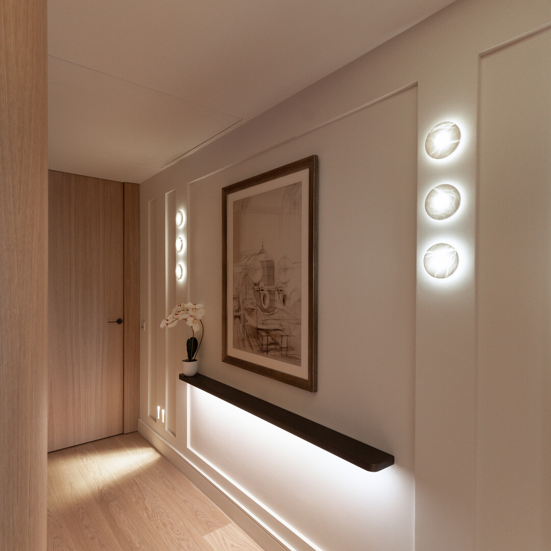 The apartment also benefits from numerous integrated storage solutions, a KNX home automation system, and built-in televisions in both the living room and the master suite.