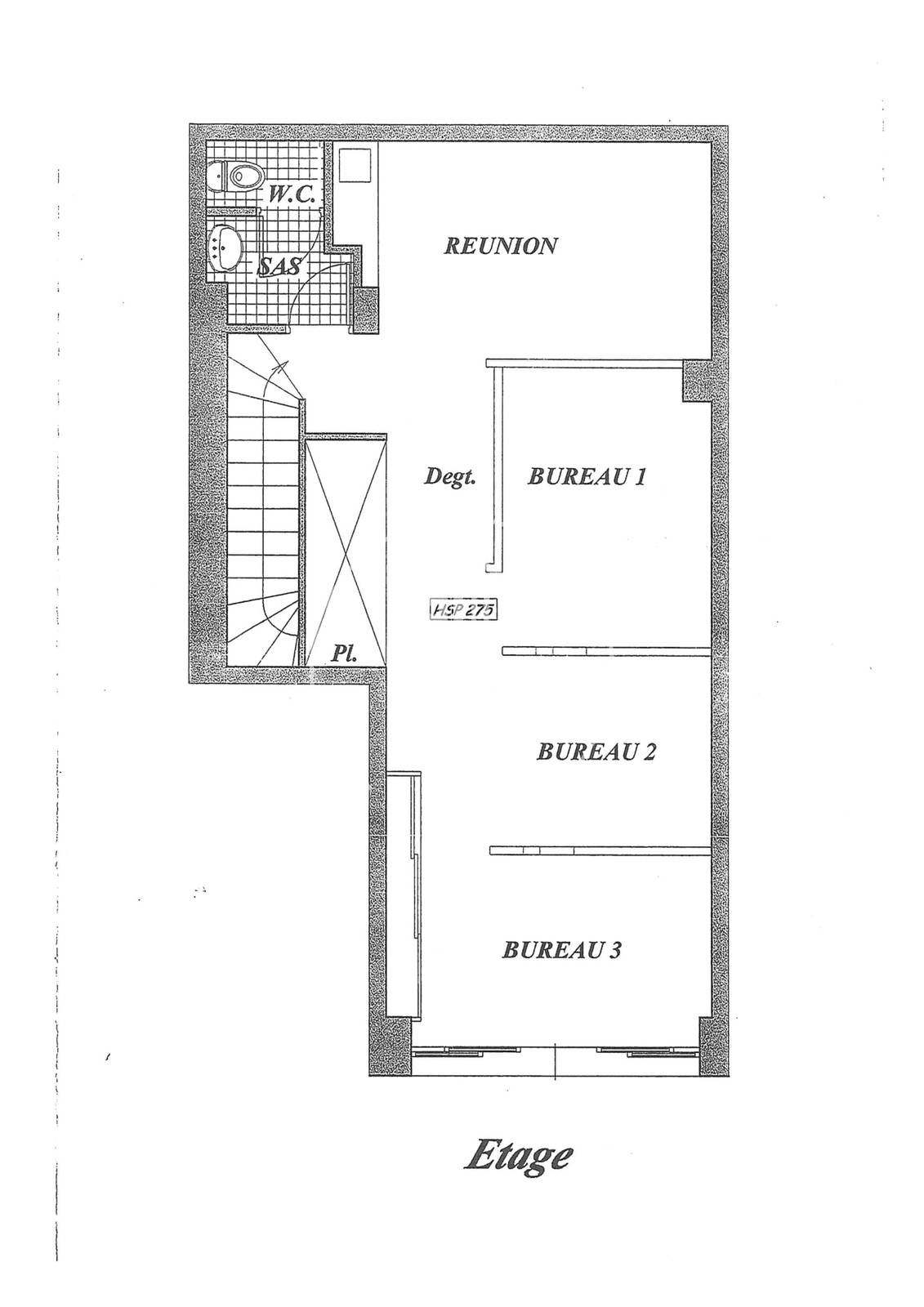 - Piano terra : Superficie di circa 50 m² che si affaccia sulla strada con un'ampia vetrata, che offre un'ottima visibilità.
