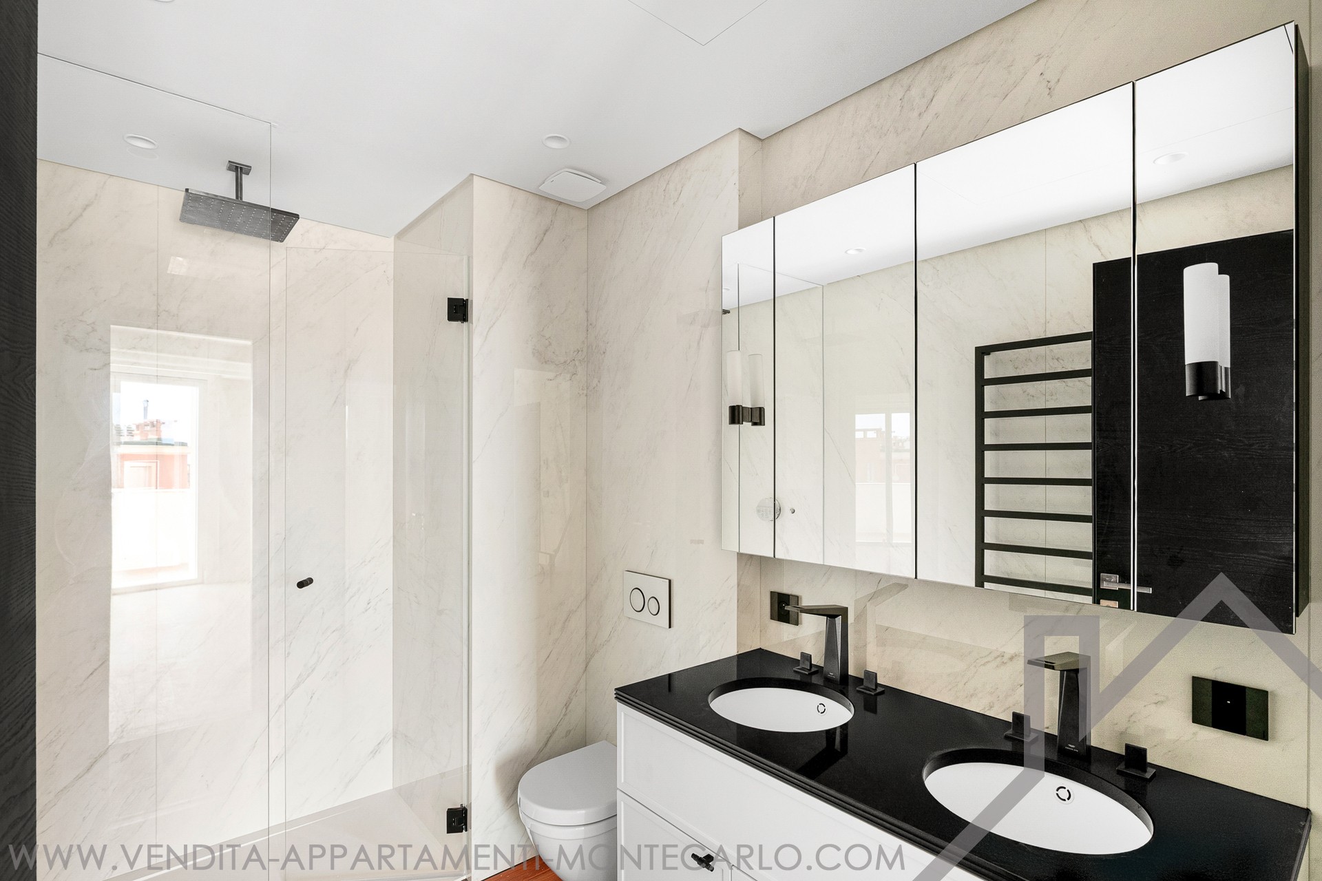 Questo appartamento vanta anche una spaziosa e piacevole terrazza d'angolo di 41 mq con vista ininterrotta sulla città e sul mare.
