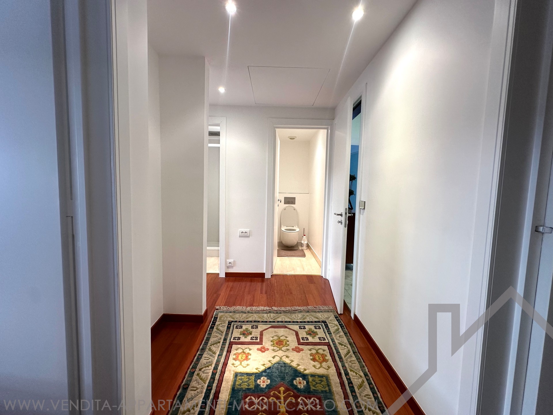 L'appartamento è composto da un ingresso, un soggiorno con cucina a vista e affaccio sulla loggia in facciata. 2 camere da letto che si aprono anche su una loggia, uno spogliatoio, un bagno con doccia, un bagno, una toilette.