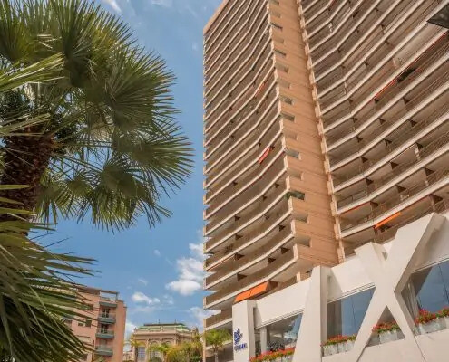 Nella residenza più ricercata di Monaco, spazioso appartamento di 3 locali con terrazza e vista mare.