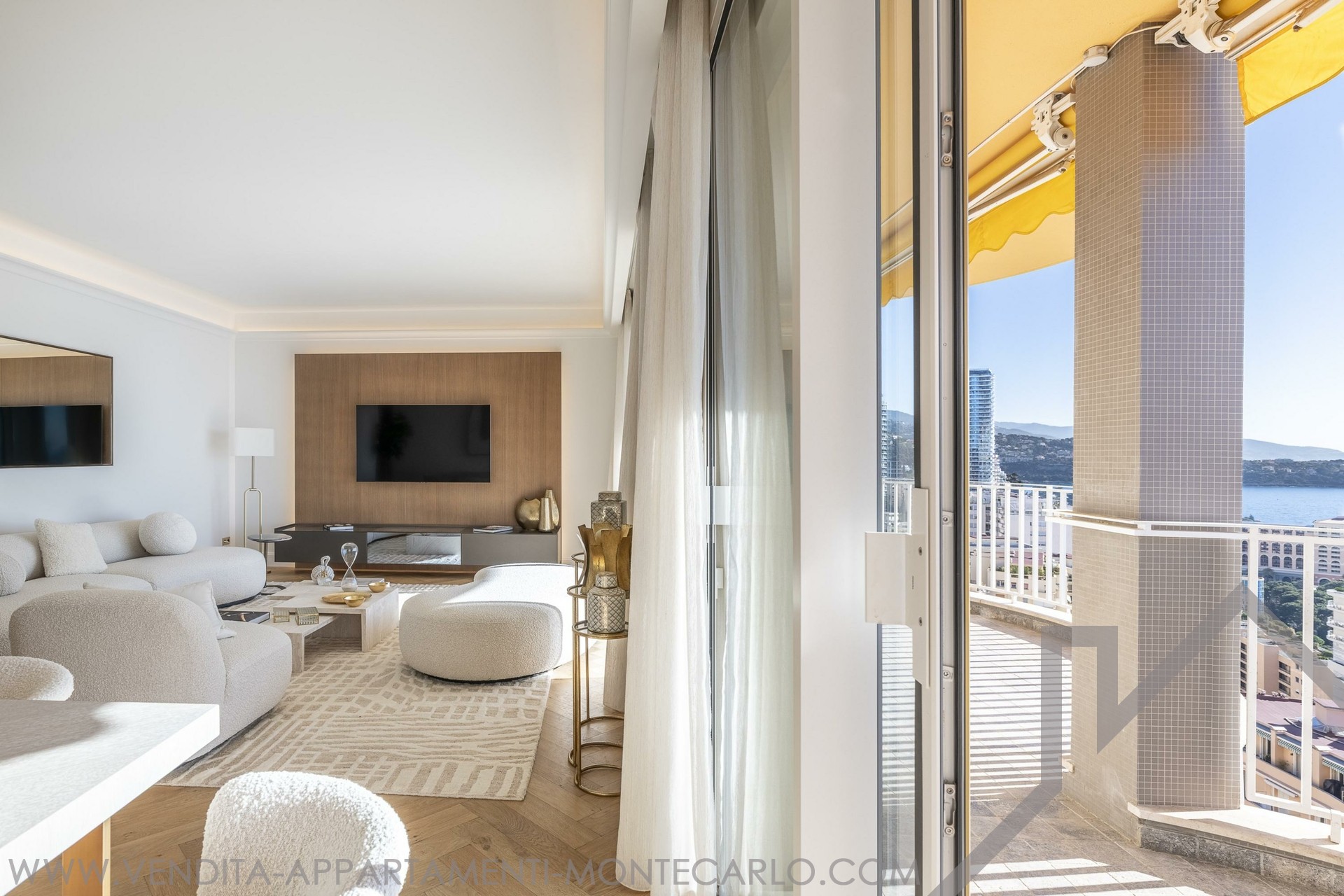 Con una vista eccezionale sul mare e sulla Principato, questo appartamento di 3 locali all'ultimo piano è situato in un edificio di prestigio a due passi dalle spiagge e vicino a tutti i servizi.