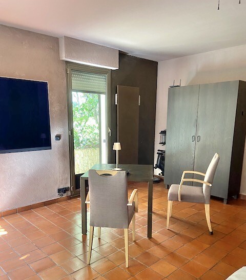 Ingresso, angolo cottura attrezzato, sala principale con armadio, spogliatoio, bagno con doccia, aria condizionata, doppi vetri, terrazza