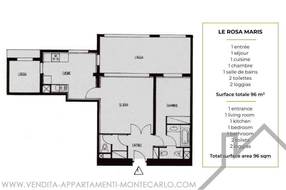 Superficie totale : 96 m²