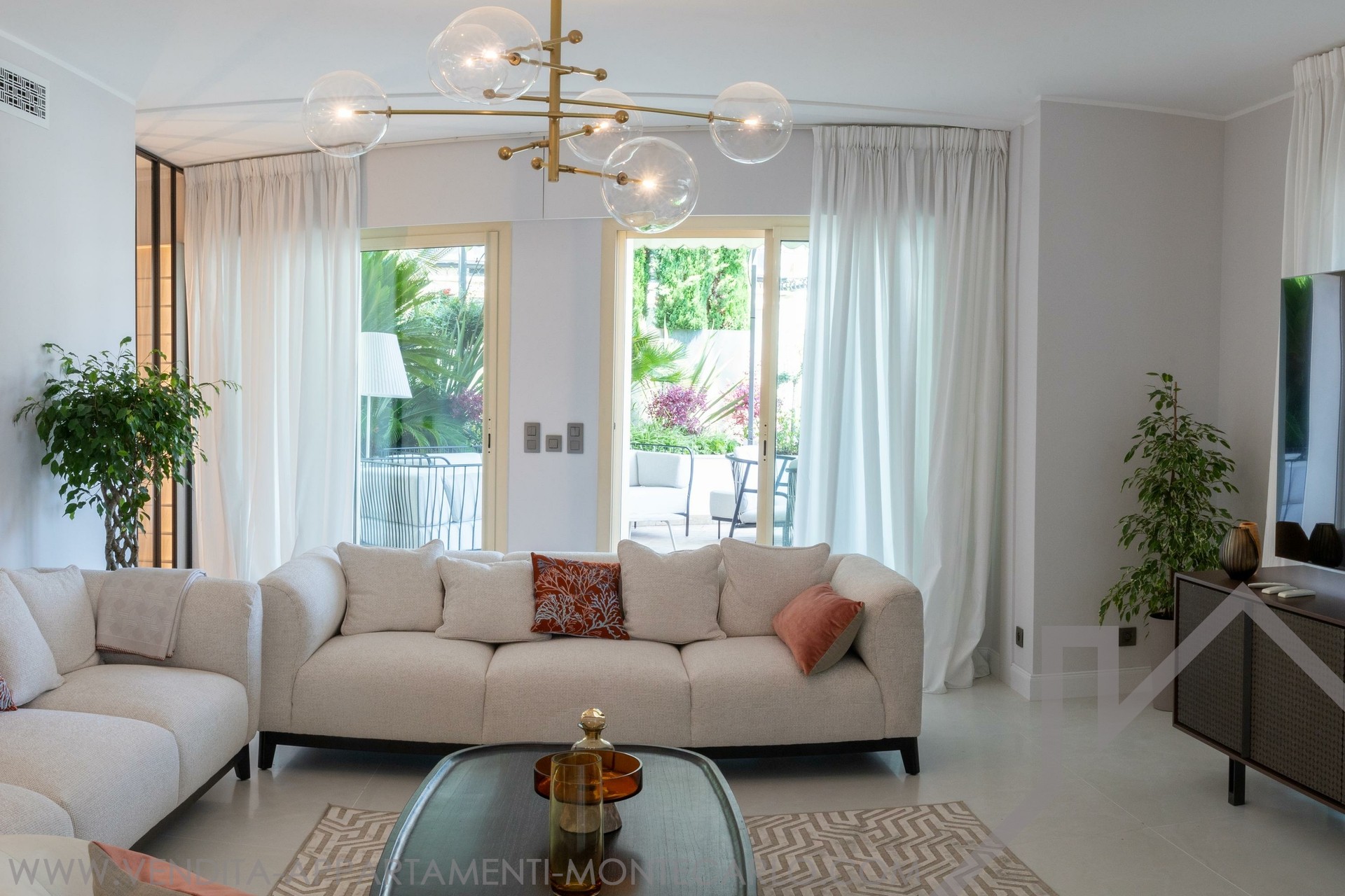 Completamente rinnovato e arredato con gusto in stile contemporaneo, questo appartamento familiare offre una grande terrazza alberata di 95 m2 con pergola . A 5 minuti dalle spiagge del Larvotto (tramite ascensore pubblico) e in prossimità di tutti i servizi.