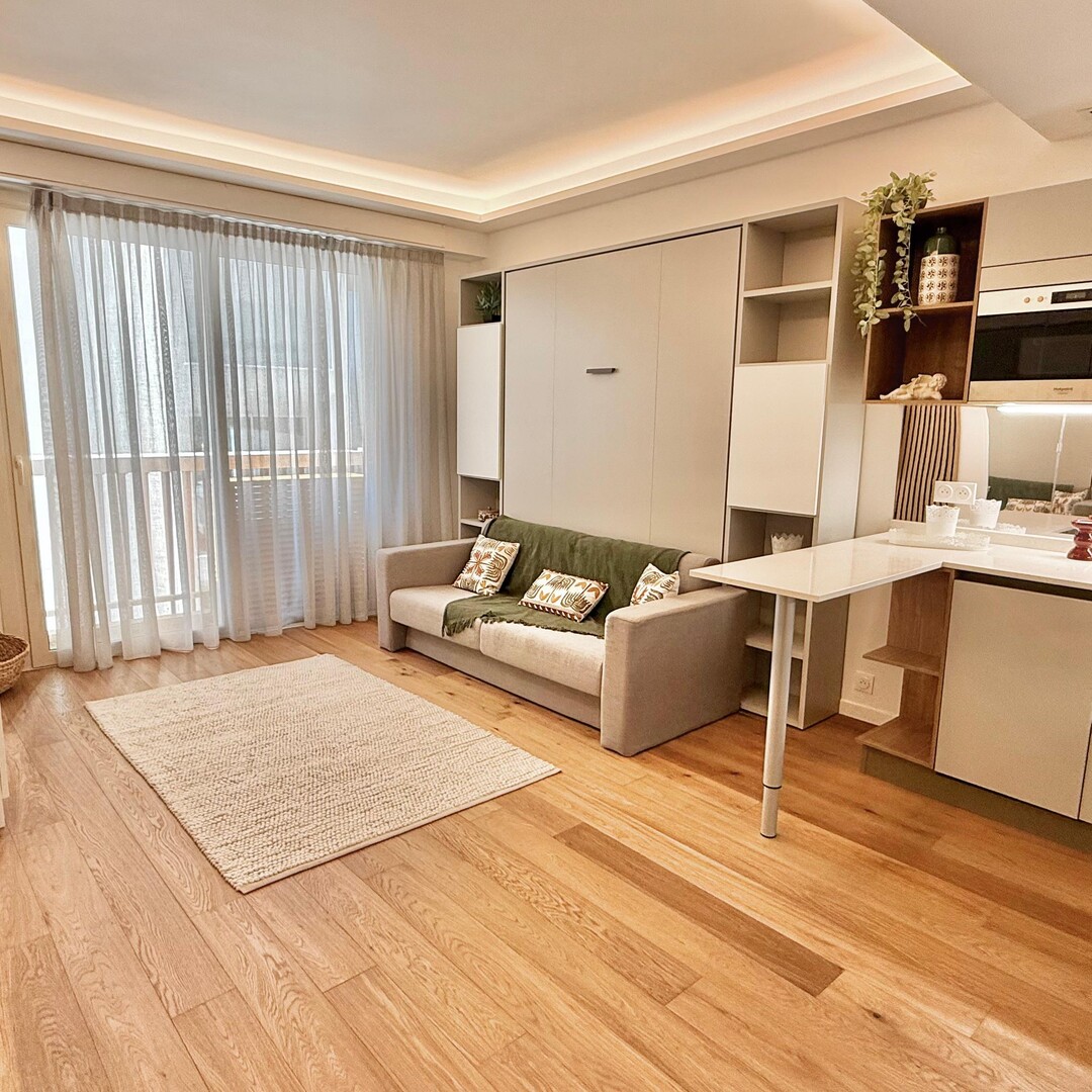 • Luminoso soggiorno con letto a scomparsa, che ottimizza lo spazio