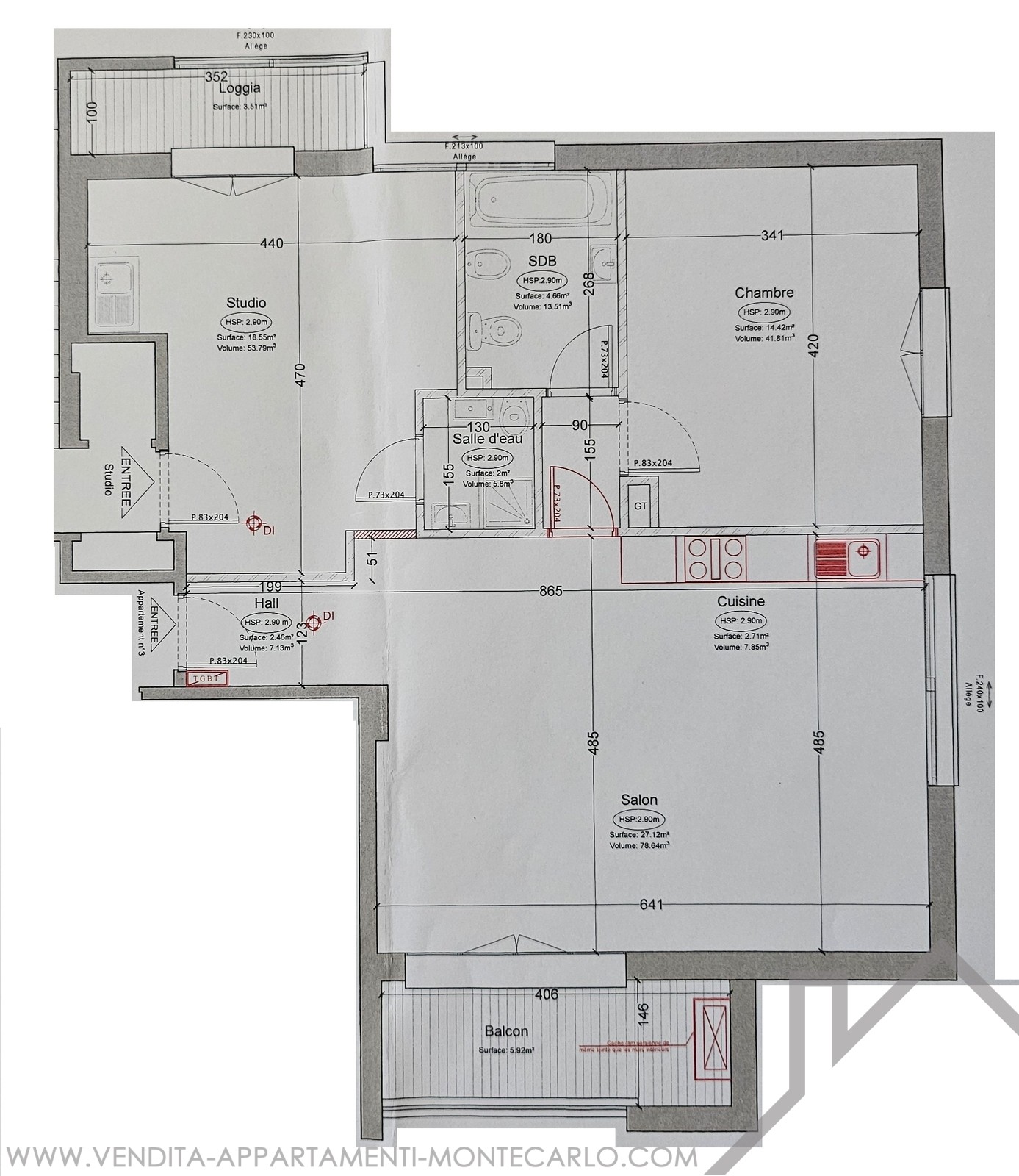 Superficie totale : 83.5 m²