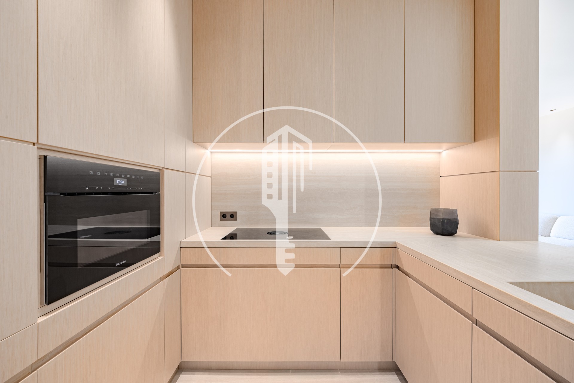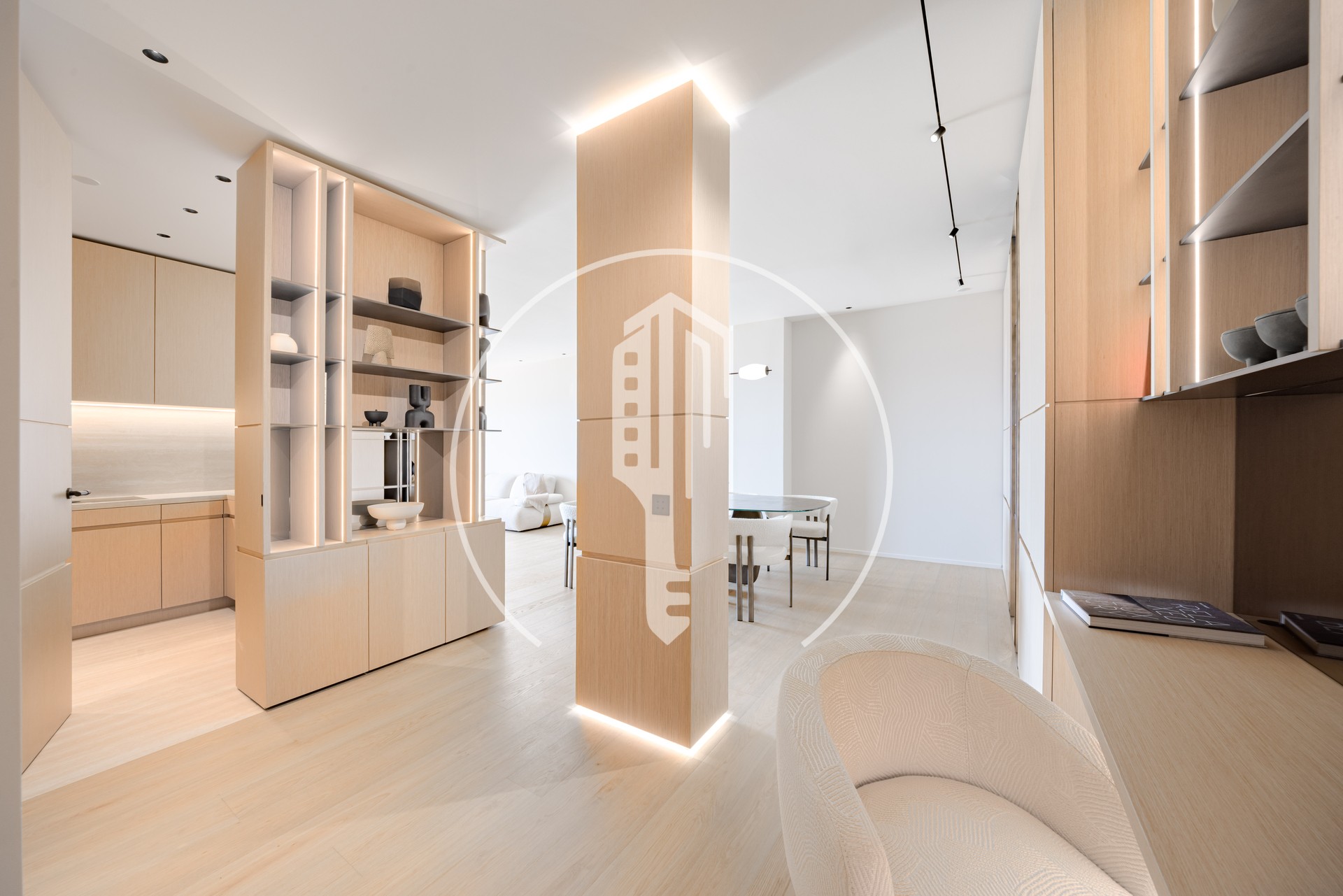 Ad un piano alto, questo appartamento spazioso offre un ampio soggiorno con zona pranzo, una cucina semi-aperta completamente attrezzata, 2 camere da letto, 2 bagni e servizi ospiti.