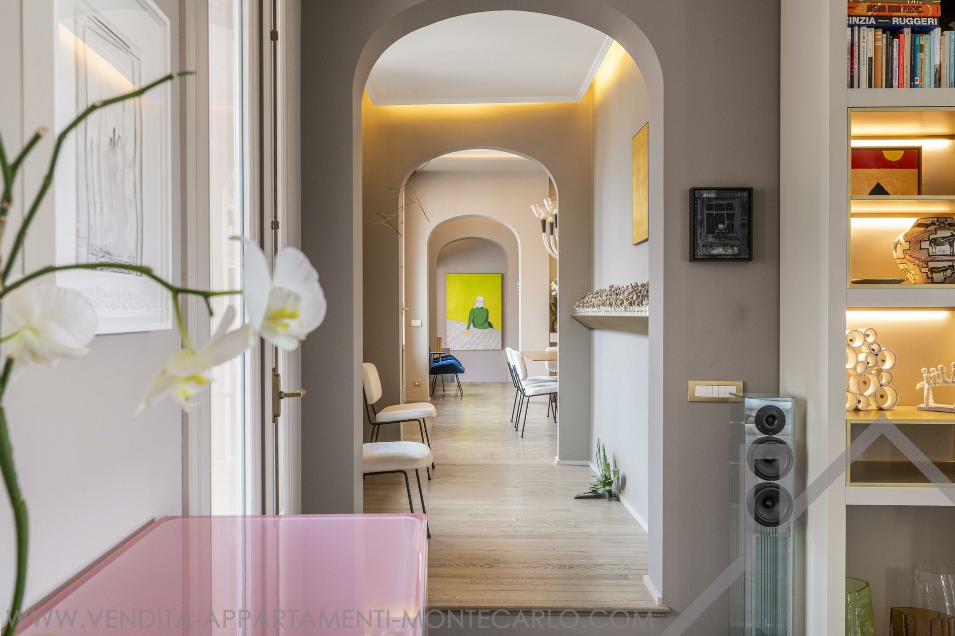 Ogni ambiente di questa residenza straordinaria è stato pensato per garantire intimità, comfort e carattere, in un contesto luminoso e sereno. È la perfetta fusione tra il fascino antico, tocchi contemporanei e una disposizione non convenzionale. Fin dall’ingresso, l’ampio soggiorno traverso, inondato di luce grazie alle grandi porte-finestre, si distingue per la notevole altezza del soffitto e si apre su una terrazza soleggiata dal fascino mediterraneo, ideale per momenti di relax con vista sui tetti di Monaco o sul mare.