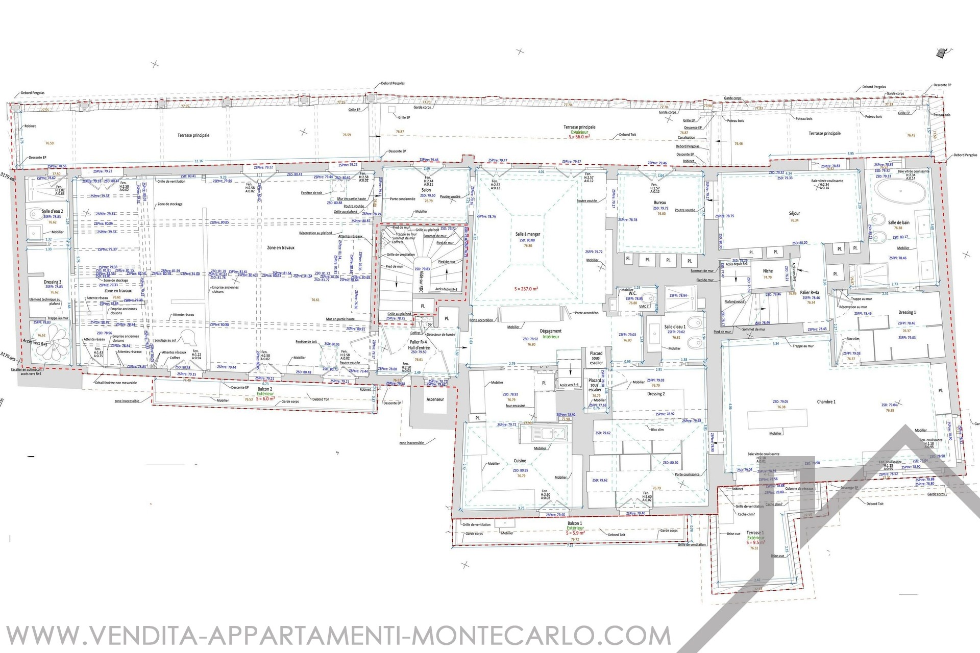 Superficie terrazzi : 90 m²