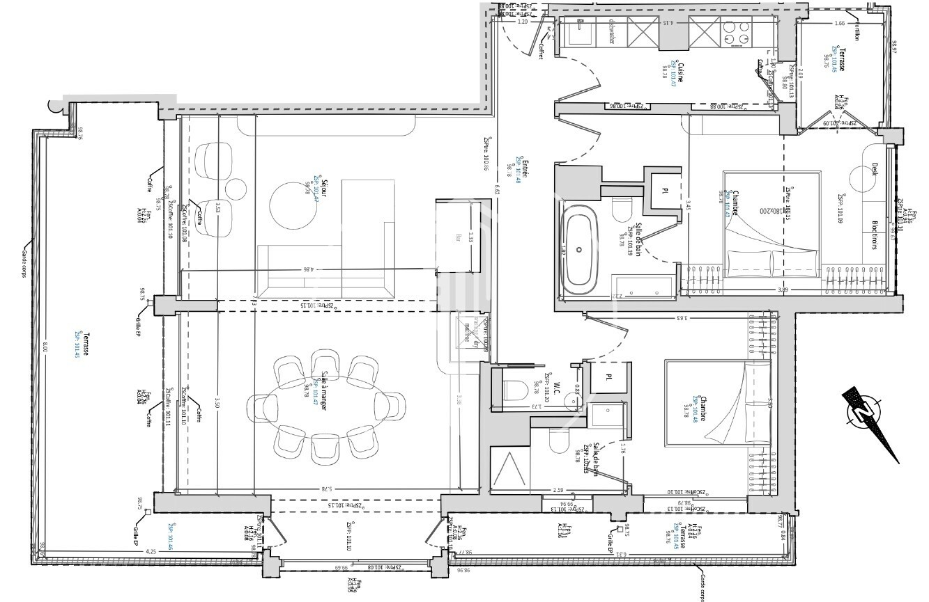 Situato al 6º piano, questo appartamento offre una superficie abitabile di 114,30 m² e 33,70 m² di terrazze. Completamente ristrutturato e arredato, è composto da un ampio ingresso, soggiorno e sala da pranzo che si aprono su due grandi logge con vista panoramica sul Casinò di Monte-Carlo e sul mare. La disposizione include anche una cucina separata, due camere da letto, due bagni e un bagno per gli ospiti.