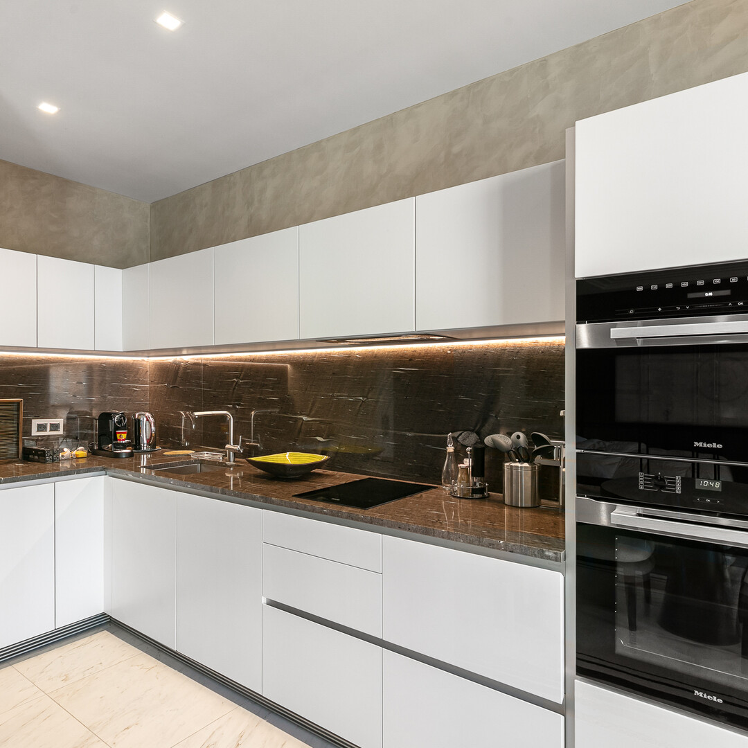 Questo luminoso appartamento al piano alto gode di una vista piacevole e senza ostacoli grazie alle sue finestre a tutta altezza, che forniscono luce naturale per tutto il giorno.