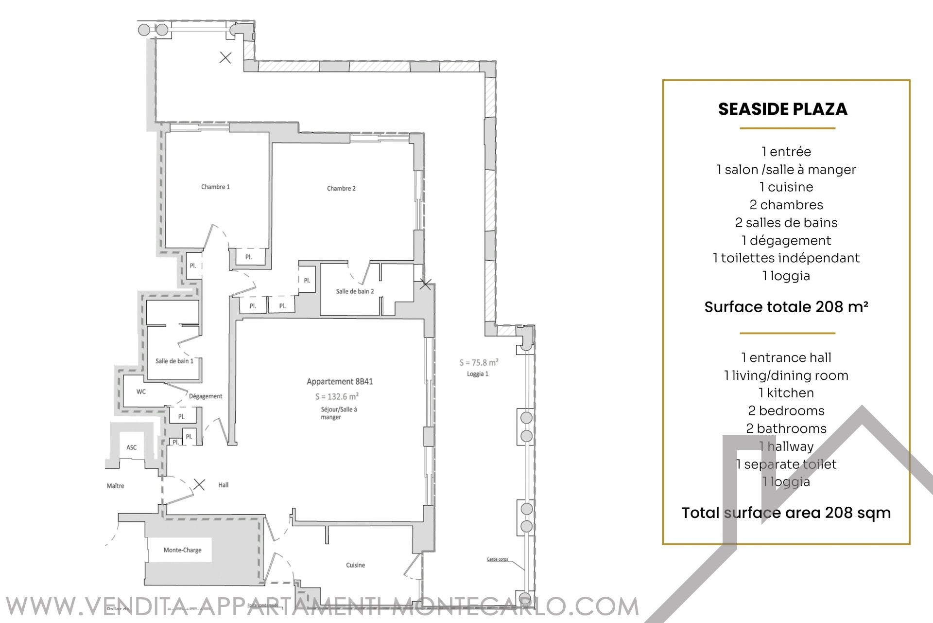 Superficie totale : 208.4 m²