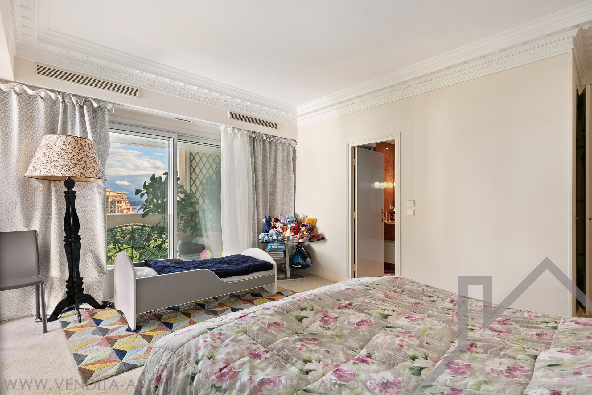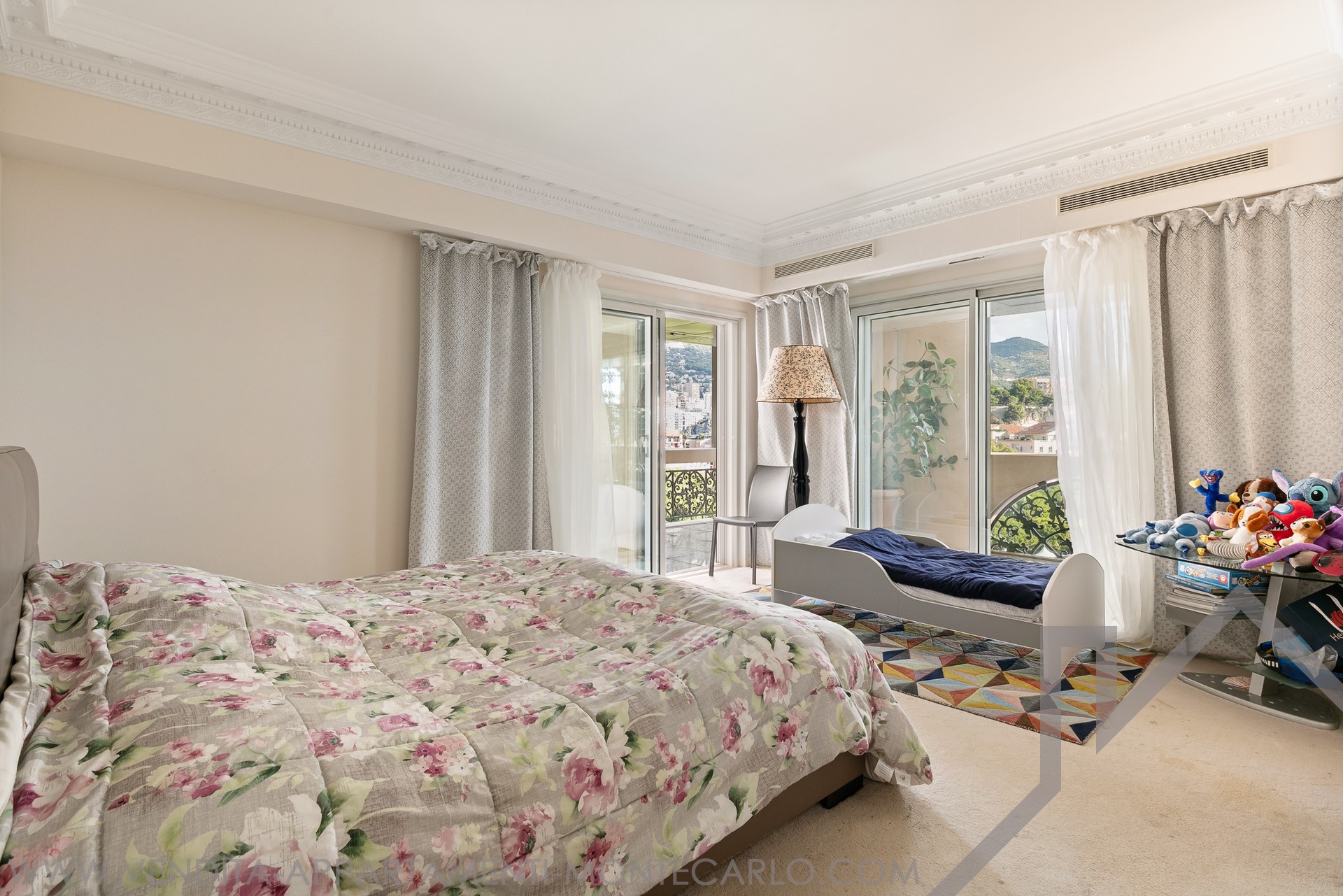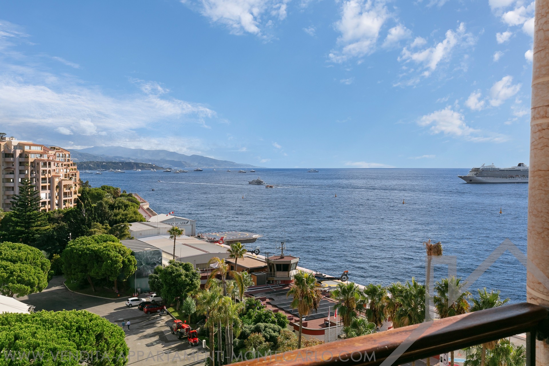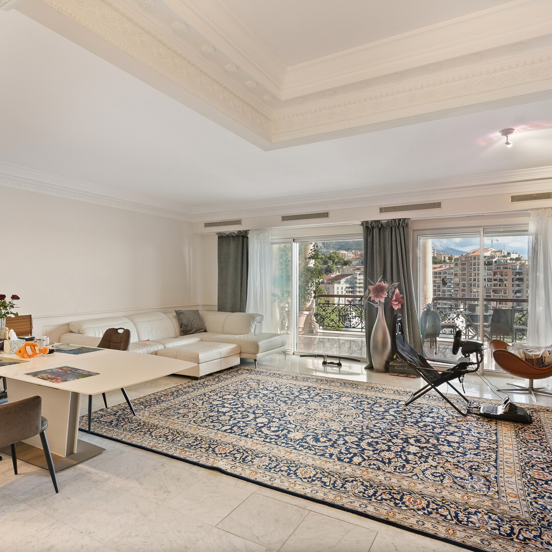 L'appartamento gode di una vista aperta sui giardini paesaggistici, sul Chapiteau de Fontvieille e panoramico sul Mar Mediterraneo, in un ambiente privilegiato.