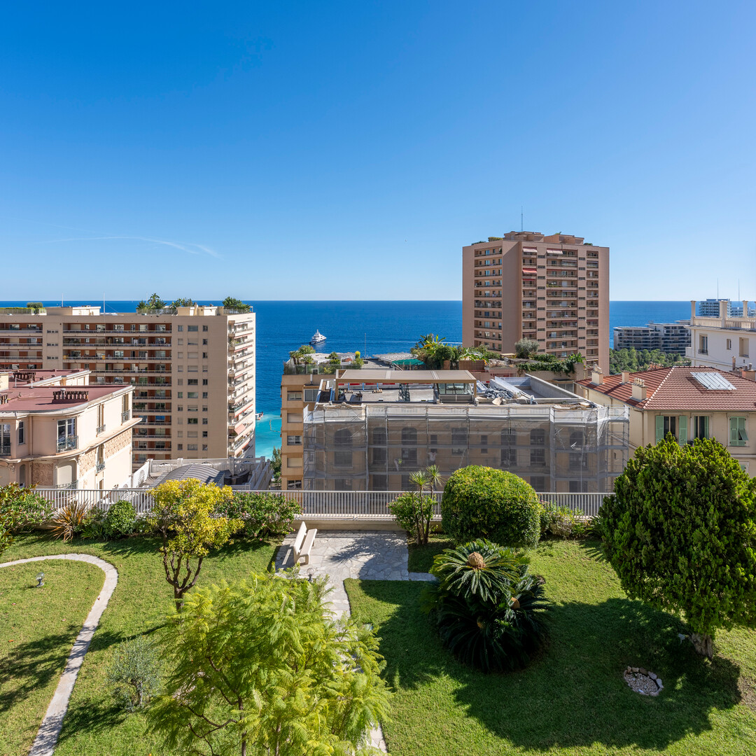 Situato nella prestigiosa residenza Les Abeilles, a pochi passi dal Boulevard des Moulins e dalle spiagge del Larvotto, questo raro indirizzo seduce con il suo giardino privato, il suo servizio di portineria e il suo raffinato ambiente abitativo. L'appartamento, completamente ristrutturato con servizi di alta gamma, offre volumi superbi e una vista panoramica sul mare dal suo ampio terrazzo.