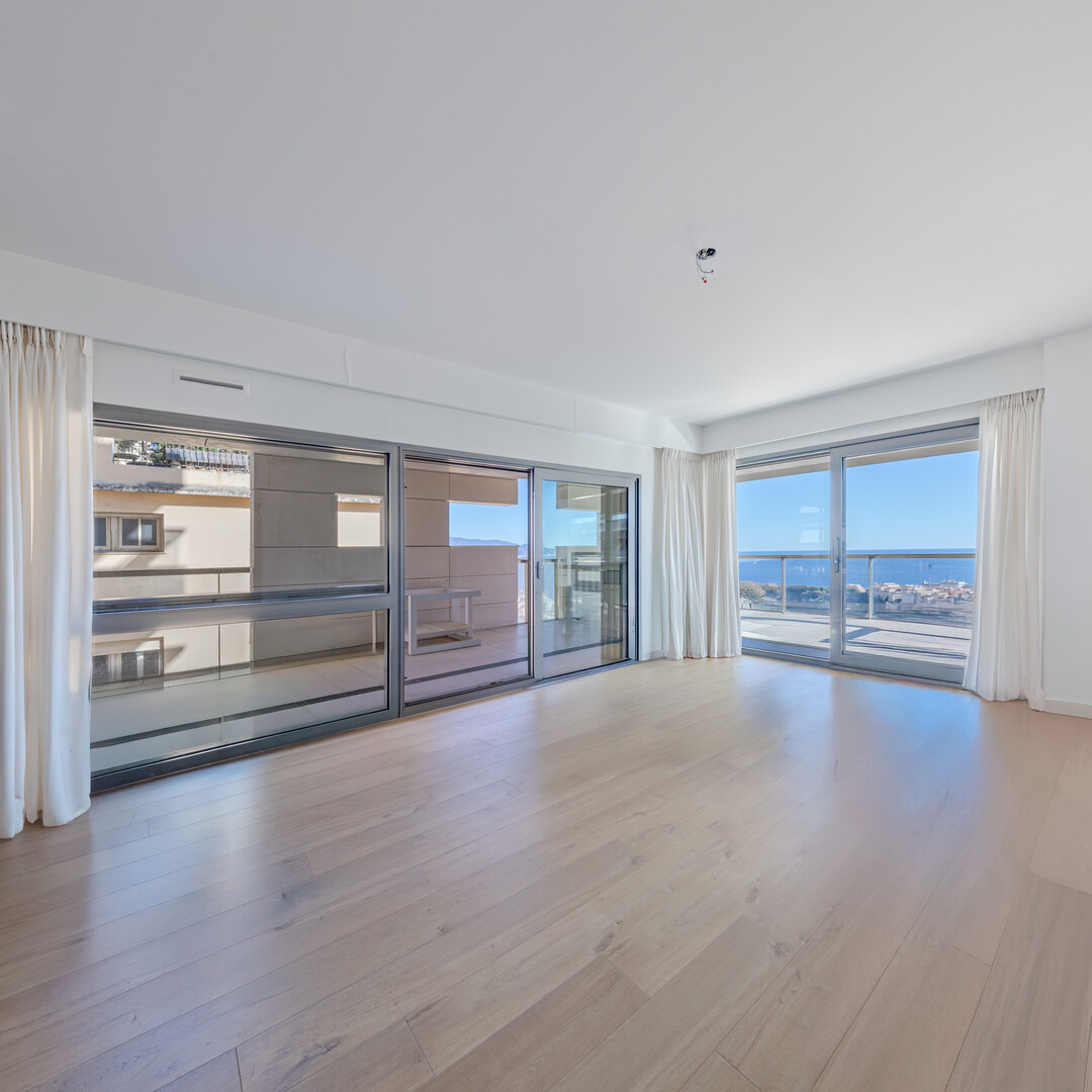 Un magnifico appartamento ristrutturato con vista spettacolare sulla Rocca di Monaco e sul mare.