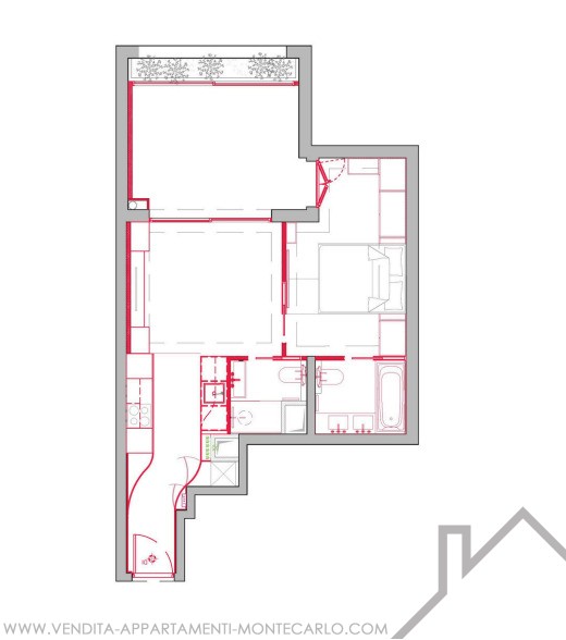 Nel quartiere di Fontvieille, un appartamento ristrutturato è composto come segue: