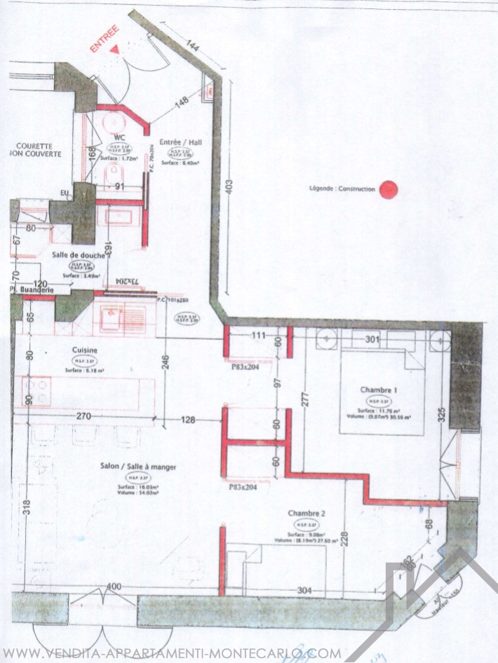 Superficie totale : 62 m²