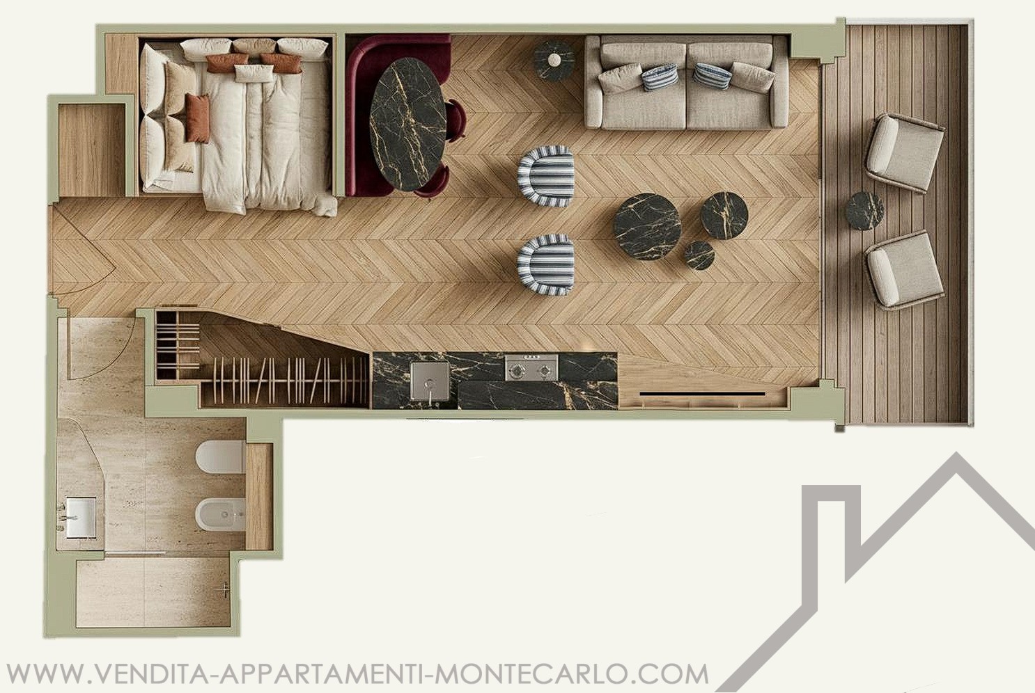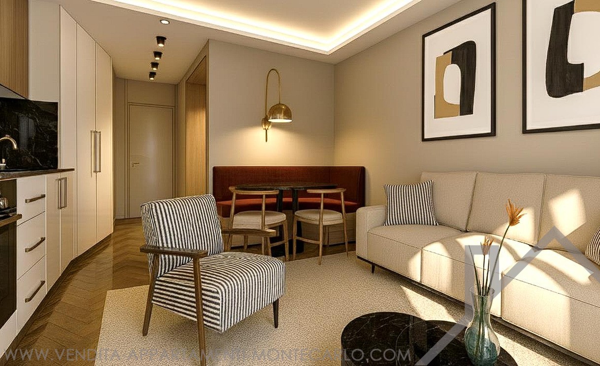 Eccezionale appartamento di tipo studio con alcova separata ad un piano elevato di una residenza di prestigio nel Cuore di Monaco con servizio concierge 24H e vicino a tutte le attività commerciali (incluso Carrefour city che si trova al piano terreno della residenza). L'appartamento è composto da ingresso, cucina integrata al soggiorno che si apre davanti alla generosa loggia con vista casino e mare, alcova al fine di preservare una separazione ideale tra spazio di vita e zona notte, bagno completo. L'appartamento è attualmente in fase di ristrutturazione e sarà consegnato chiavi in mano seconda il rendering qui presentato. Possibilità di acquistare un parcheggio grande al prezzo di 400.000€.