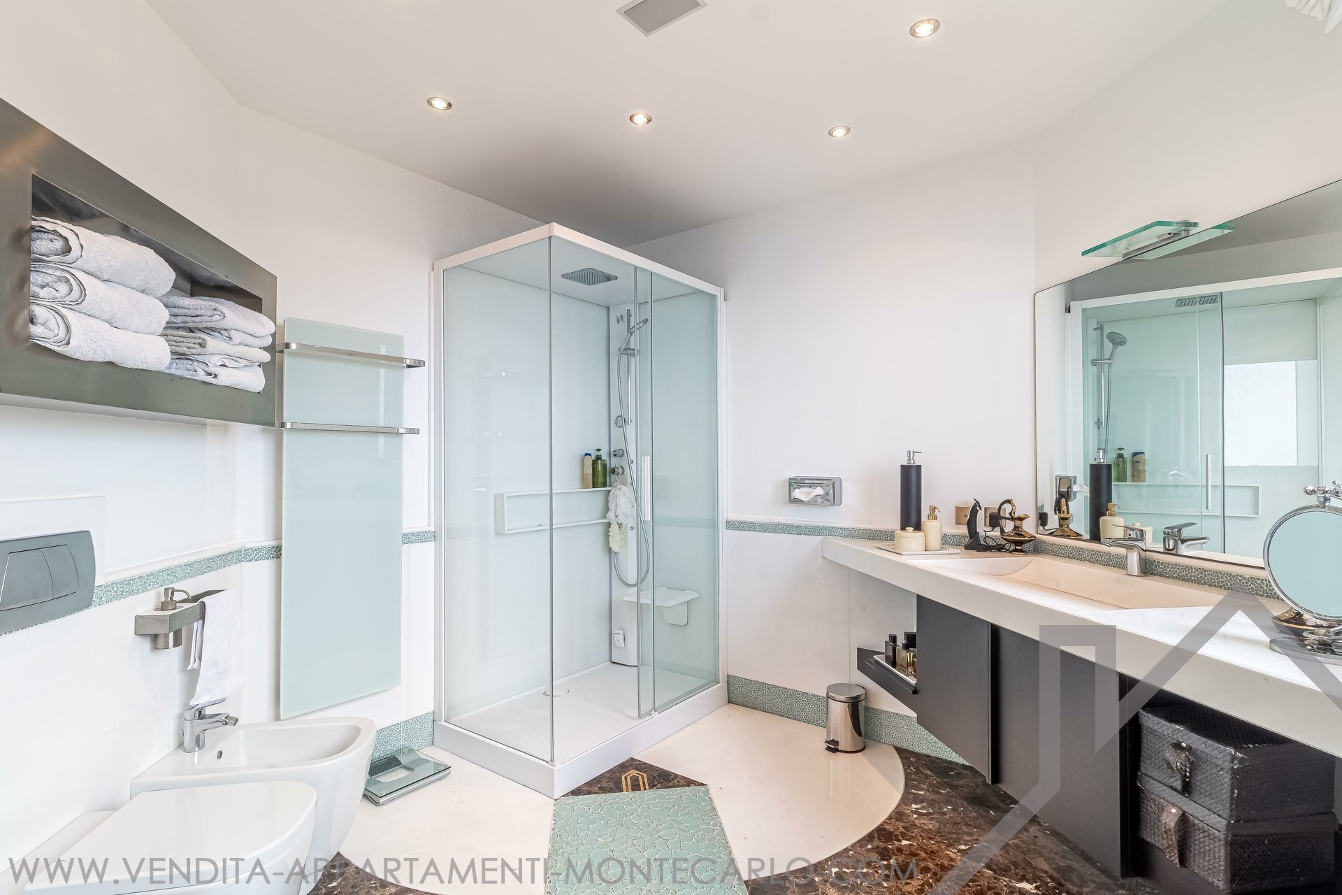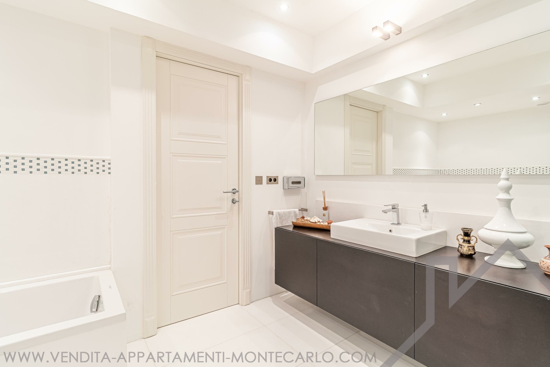 Appartamento di alto standing situato ad un piano alto in un condominio elegante che offre servizi di lusso quali portineria 24h24h, piscina, sala fitness, sauna.