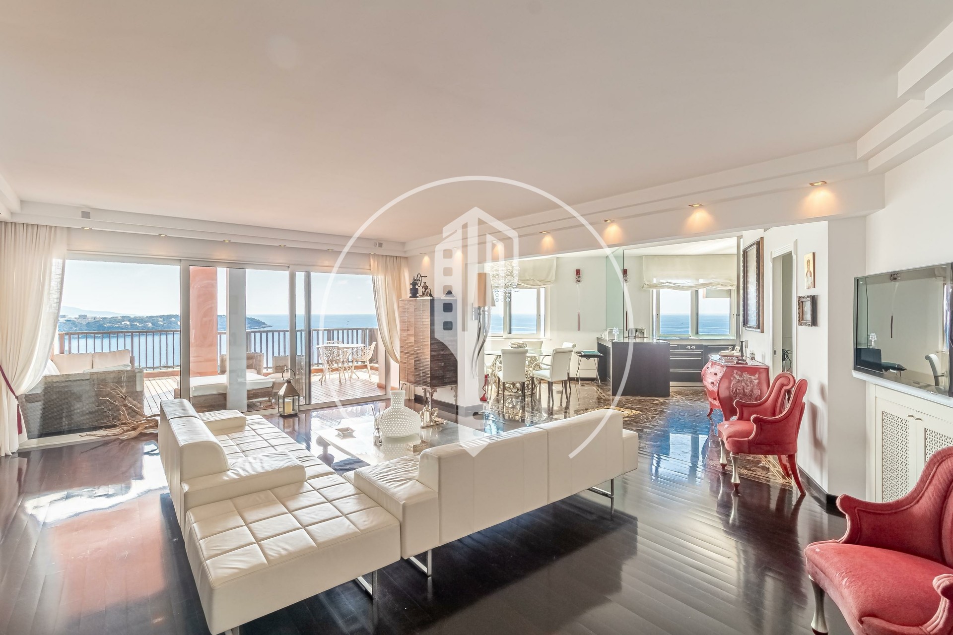È composto come segue: Ingresso, salone e sala da pranzo con apertura sulla terrazza con vista mare e Cap Martin, cucina attrezzata, lavanderia, ufficio (camera), camera padronale con cabina armadio e stanza da bagno en suite con doccia, ampia camera con apertura su una terrazza circolare, armadi, bagno con vasca e doccia, terza camera con stanza da bagno con doccia.