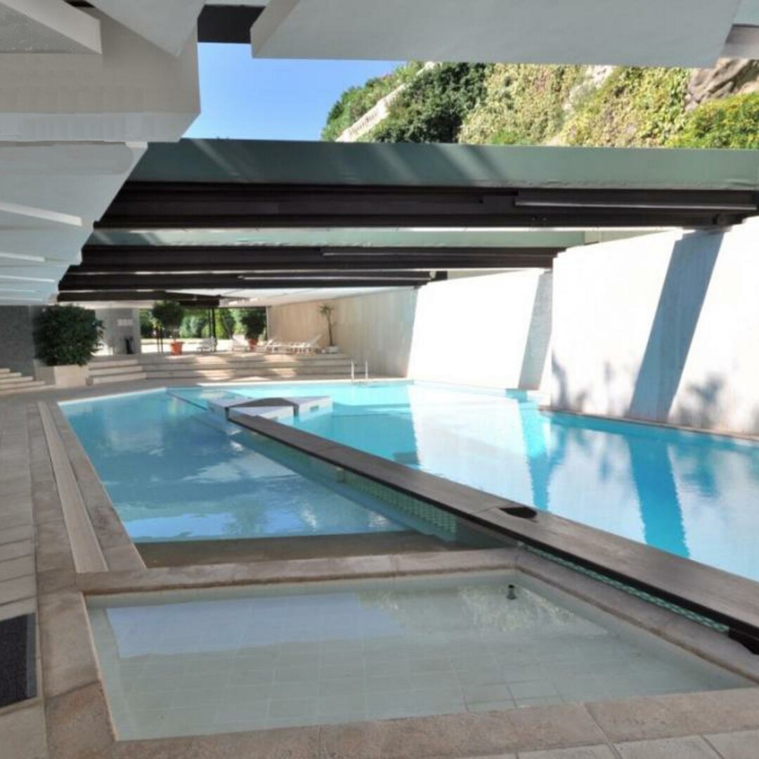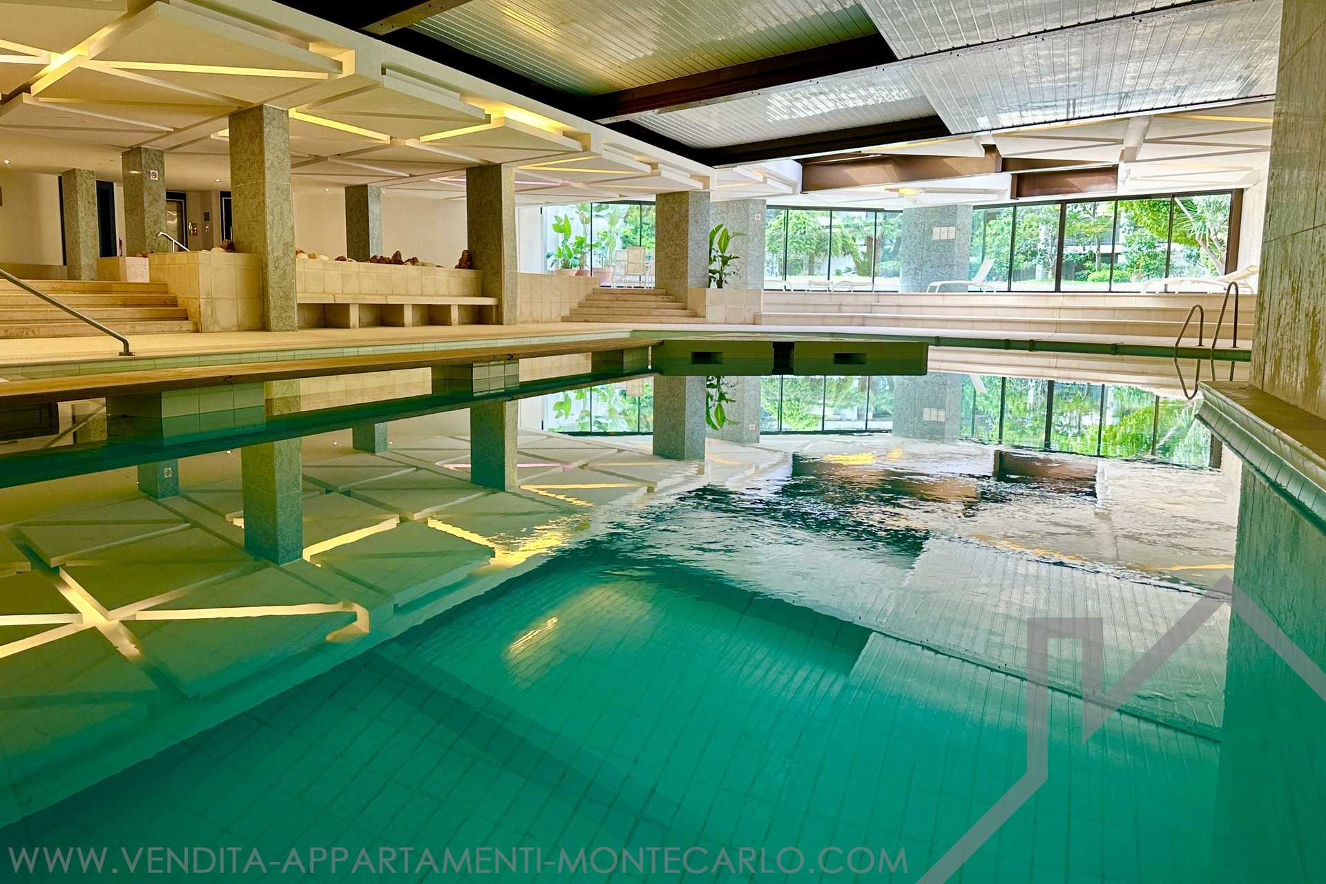 L'edificio dispone di una splendida piscina riscaldata, coperta in inverno e all'aperto in estate, con sauna, solarium e giardini. Servizio di concierge disponibile 24 ore su 24. Accesso pedonale tramite le terrazze del Casinò.