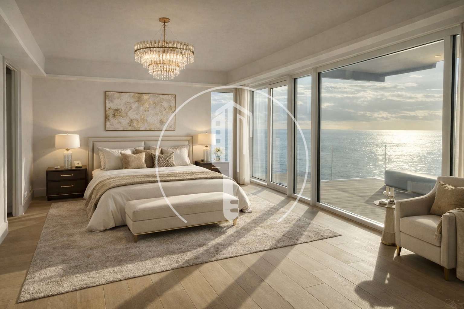 L'appartamento d'angolo traversante, bagnato di luce di fronte al mare, gode della miglior posizione, si apre su ampie terrazze offrendo una vista a 360°.