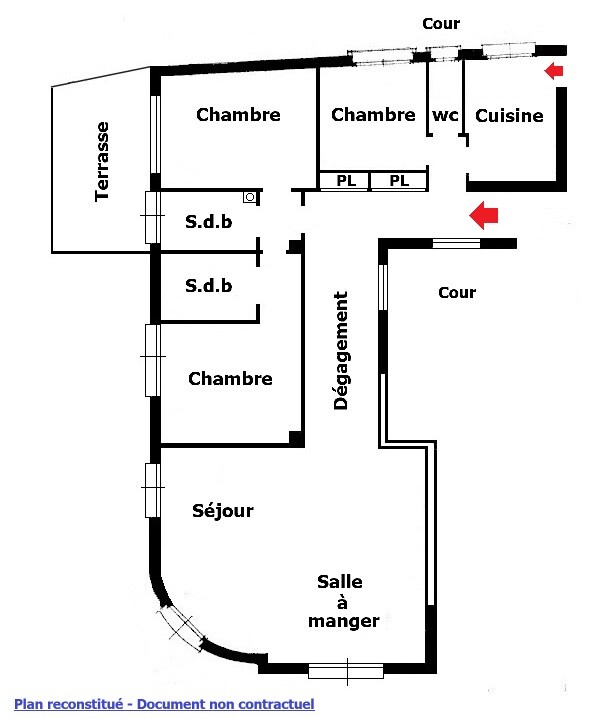 Questo appartamento è composto da: un ingresso, un corridoio typo galleria che conduce a un soggiorno doppio situato all'angolo dell'edificio e che beneficia di un'esposizione sud-ovest.