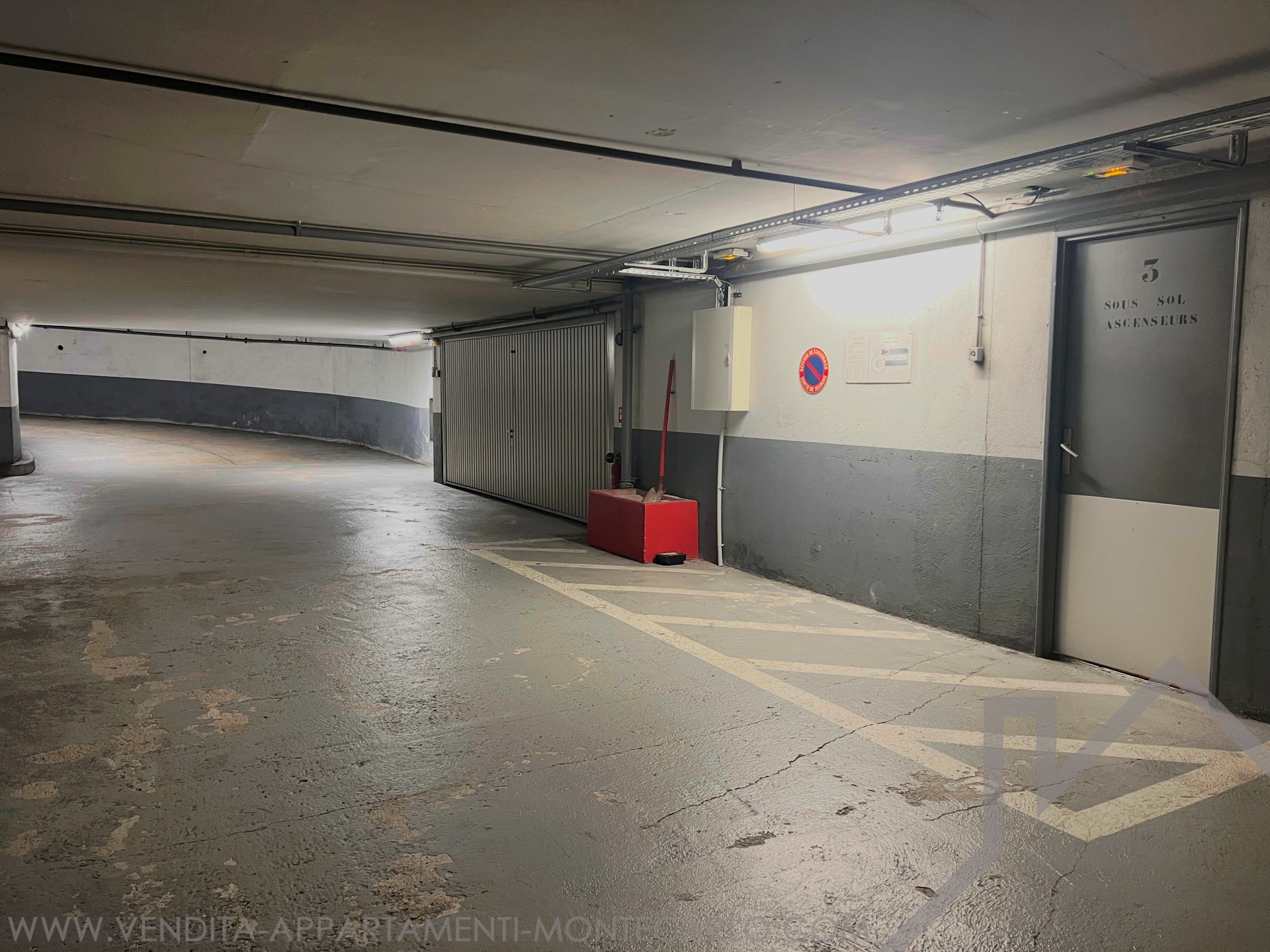Posto auto situato nel quartiere Condamine all'interno del residence "Le Soleil d'Or", con servizio di portineria e sistema di sicurezza.