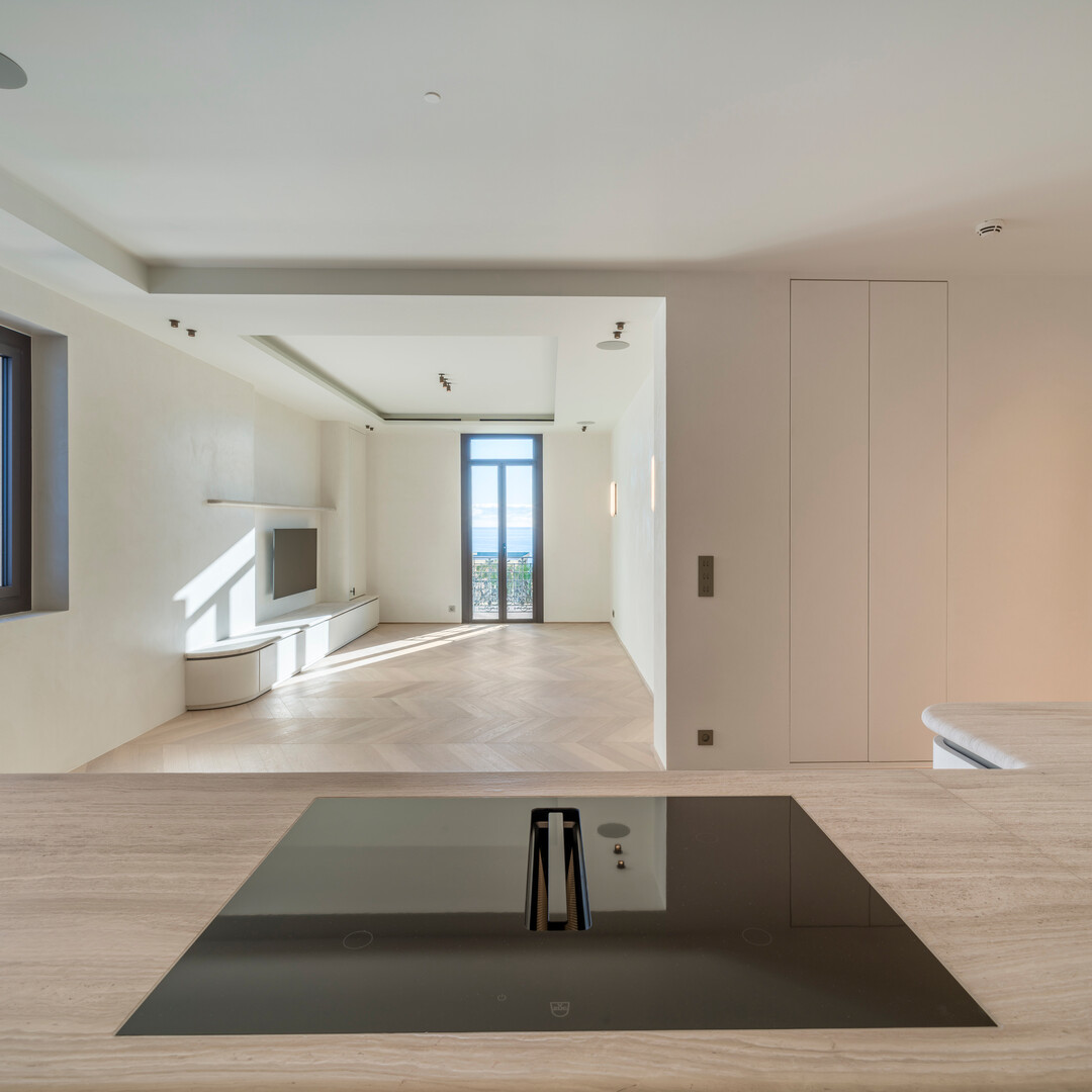 Le finiture di questa proprietà sono di rara eccellenza, ancora con vista sul Principato.
