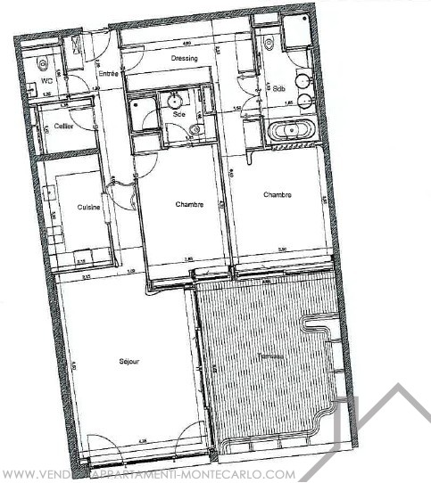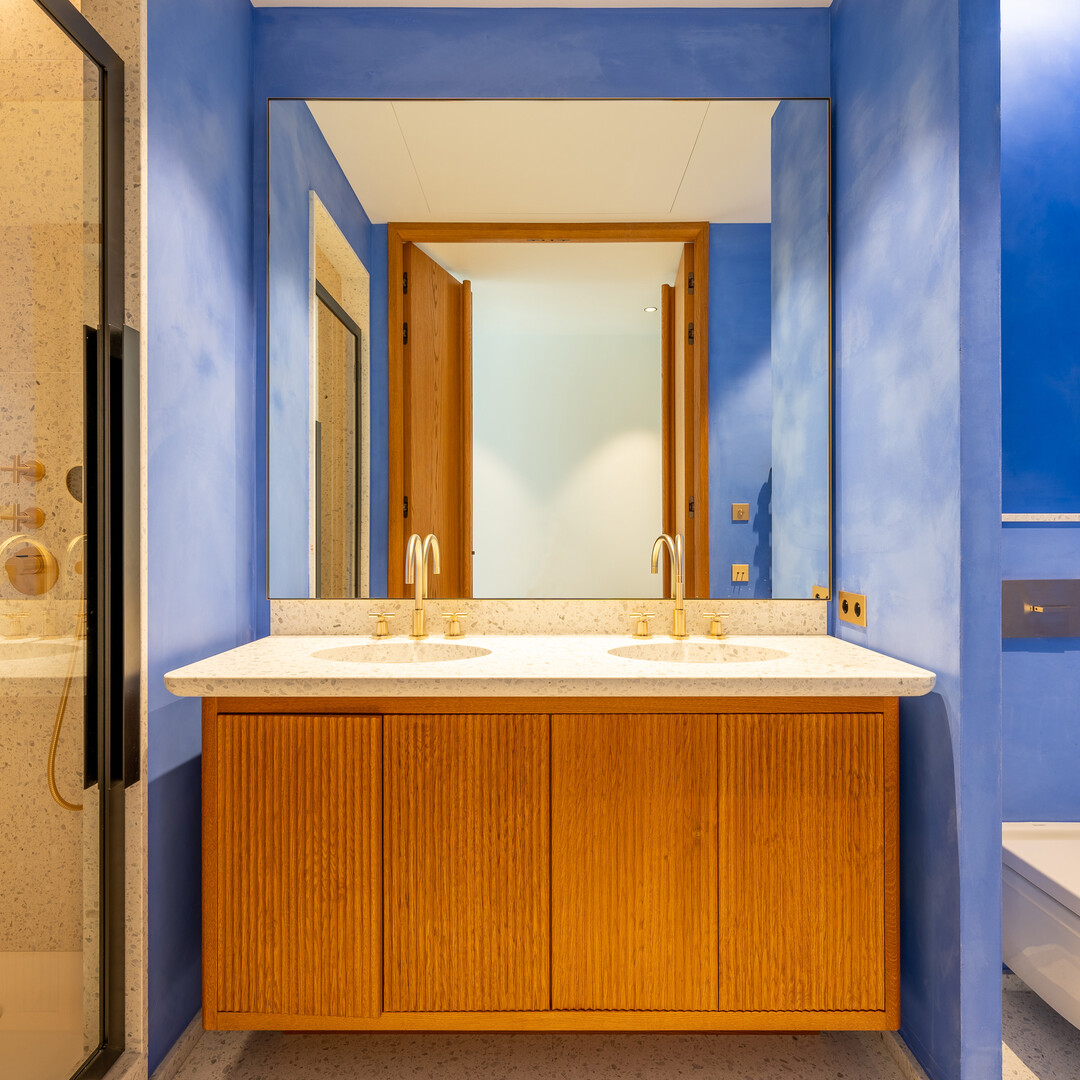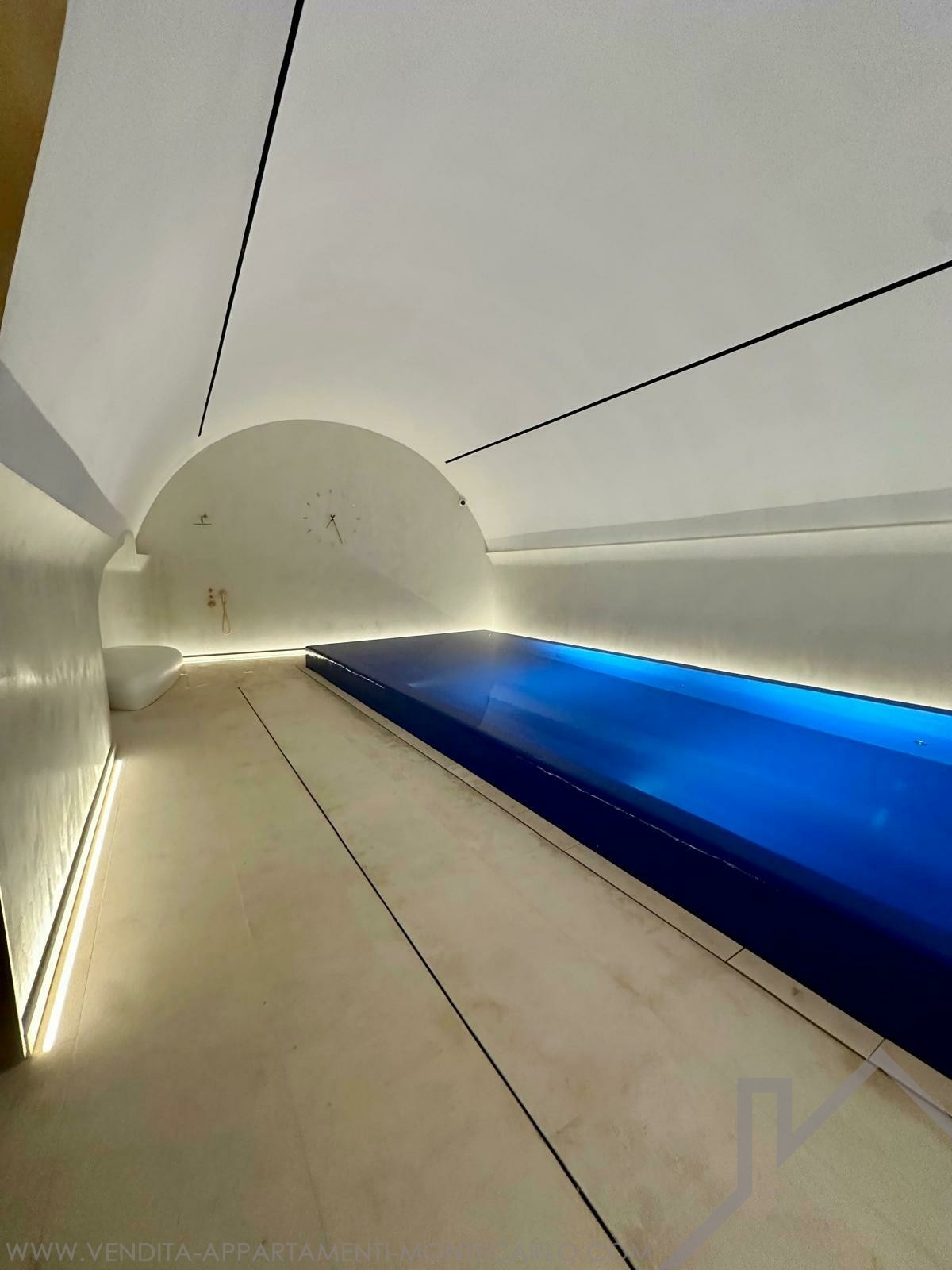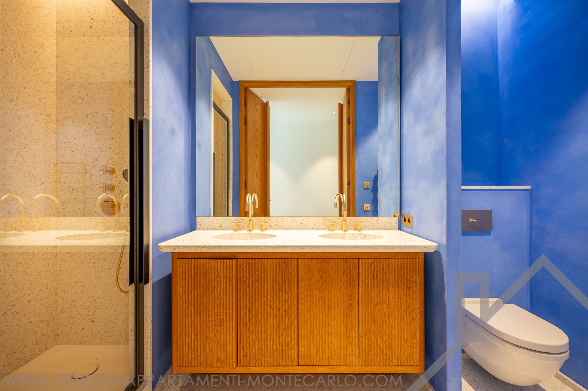 L'appartamento offre un ampio soggiorno ampliato da una terrazza affacciata sul mare, una cucina moderna completamente attrezzata, una lavanderia, un bagno per gli ospiti, oltre a due camere da letto con bagno privato, ciascuna con balcone e camerino, anch'essa rivolta al mare.