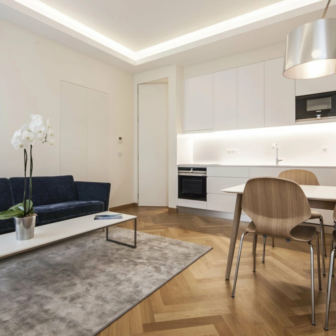 Ristrutturato con materiali di alta qualità, questo appartamento ha finiture molto belle. E' composto da ingresso, ampio soggiorno con cucina a vista completamente attrezzata, bagno in marmo, camera da letto con numerosi ripostigli.