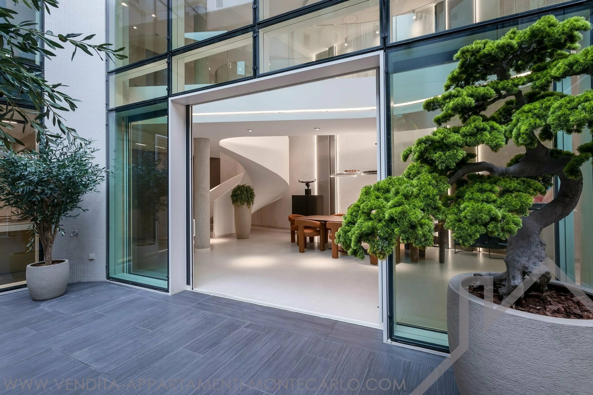 Infine, l'ultimo piano della villa è una vera e propria oasi di pace, rara nel Principato di Monaco, con la sua vegetazione lussureggiante, la piscina privata e la zona relax: un luogo ideale per intrattenere gli ospiti in un ambiente intimo e raffinato.