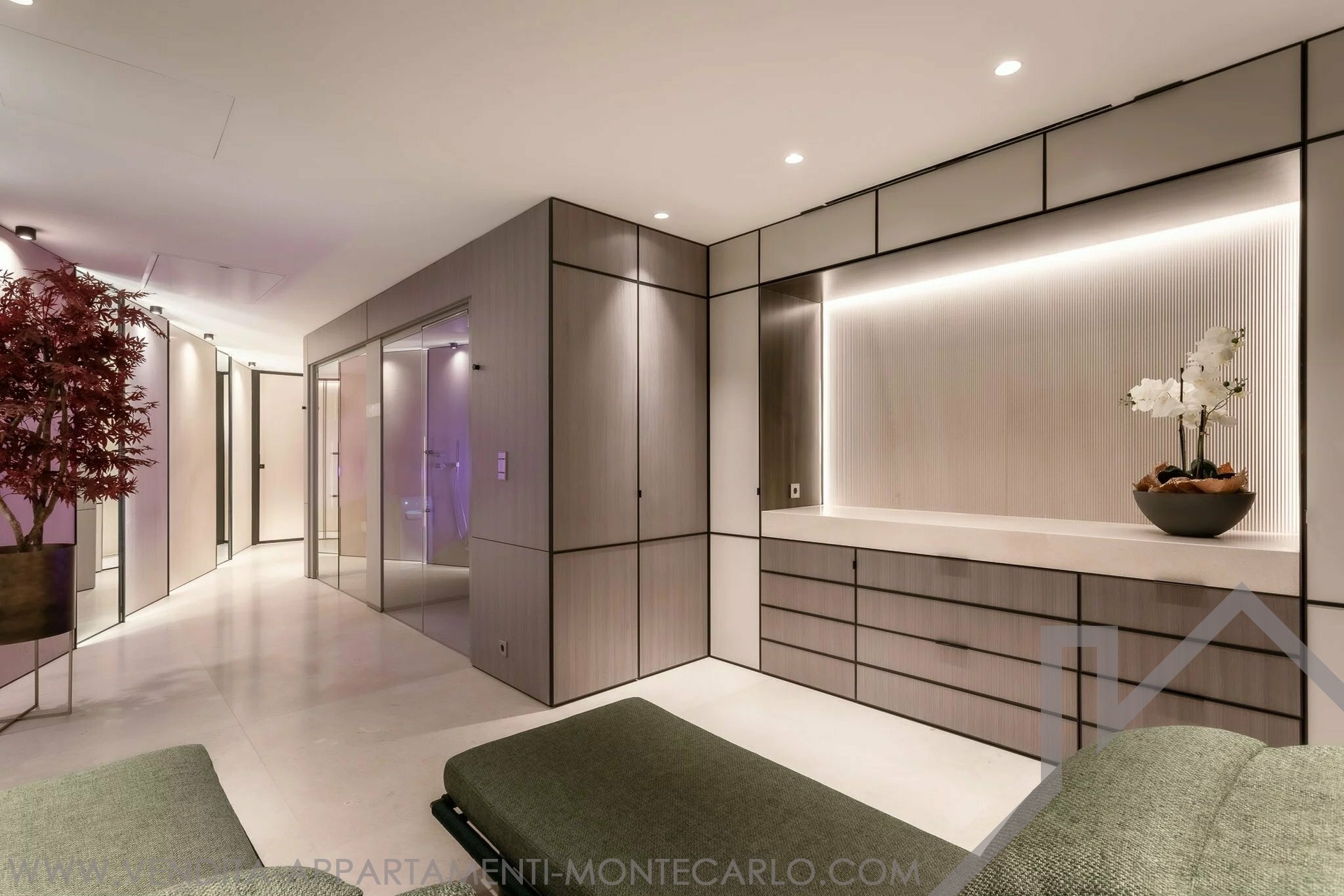 1° piano: camera da letto padronale con spogliatoio e bagno privato, nonché accesso a un'area benessere completamente attrezzata con sauna, hammam e sala relax. C'è anche una magnifica area studio privata.