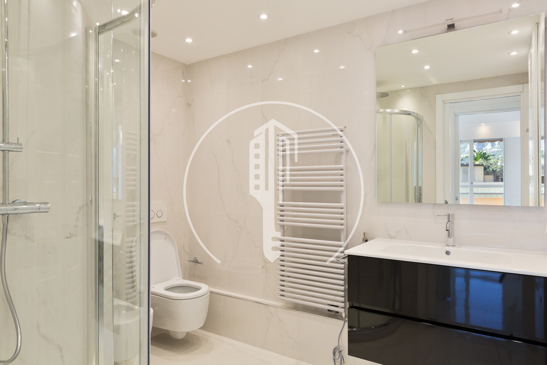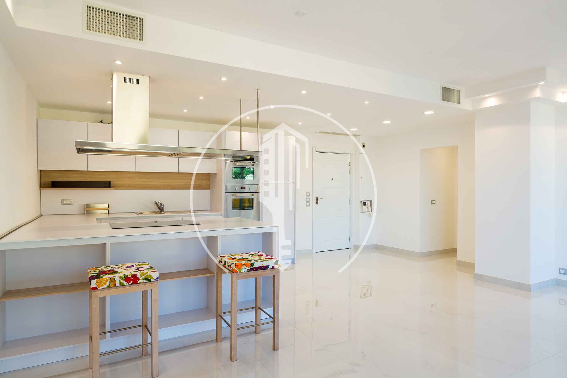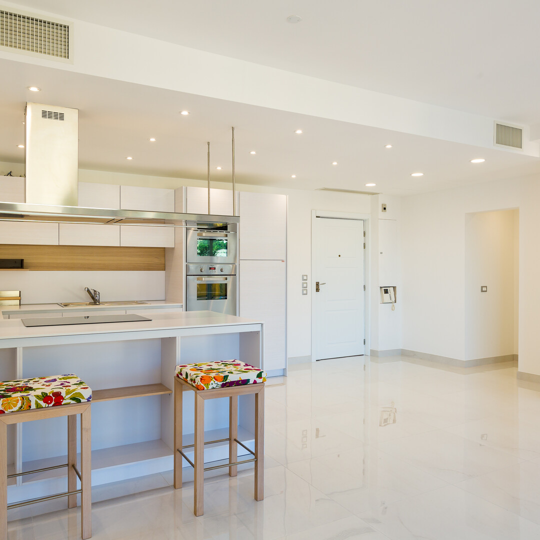L’appartamento è composto da ingresso, ampio soggiorno con cucina americana completamente attrezzata, una camera padronale con cabina armadio e bagno en suite con WC, oltre a una seconda camera con cabina armadio e bagno con doccia separato e WC.