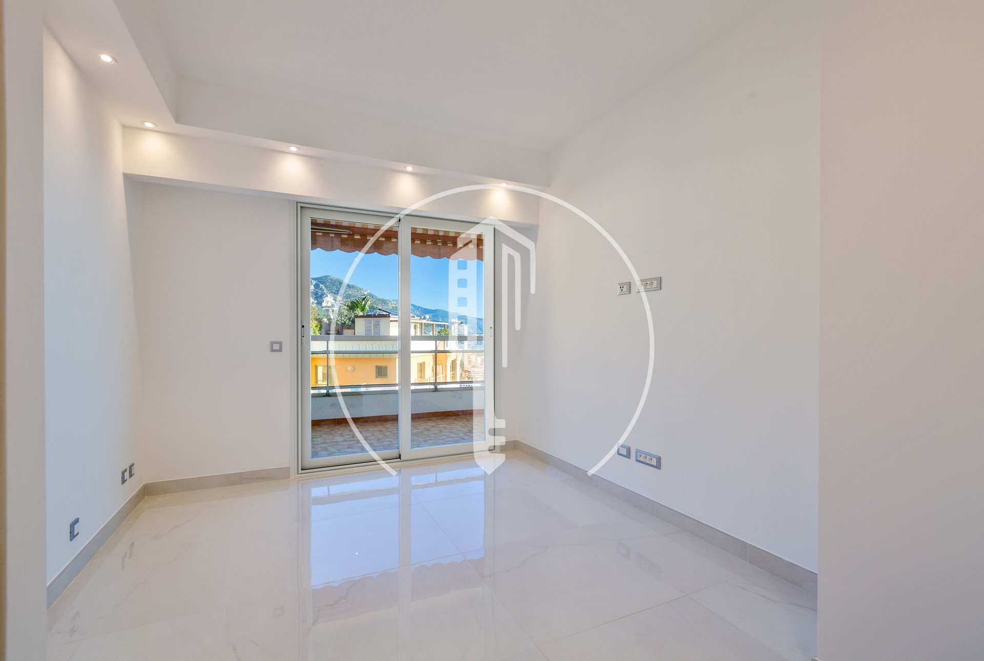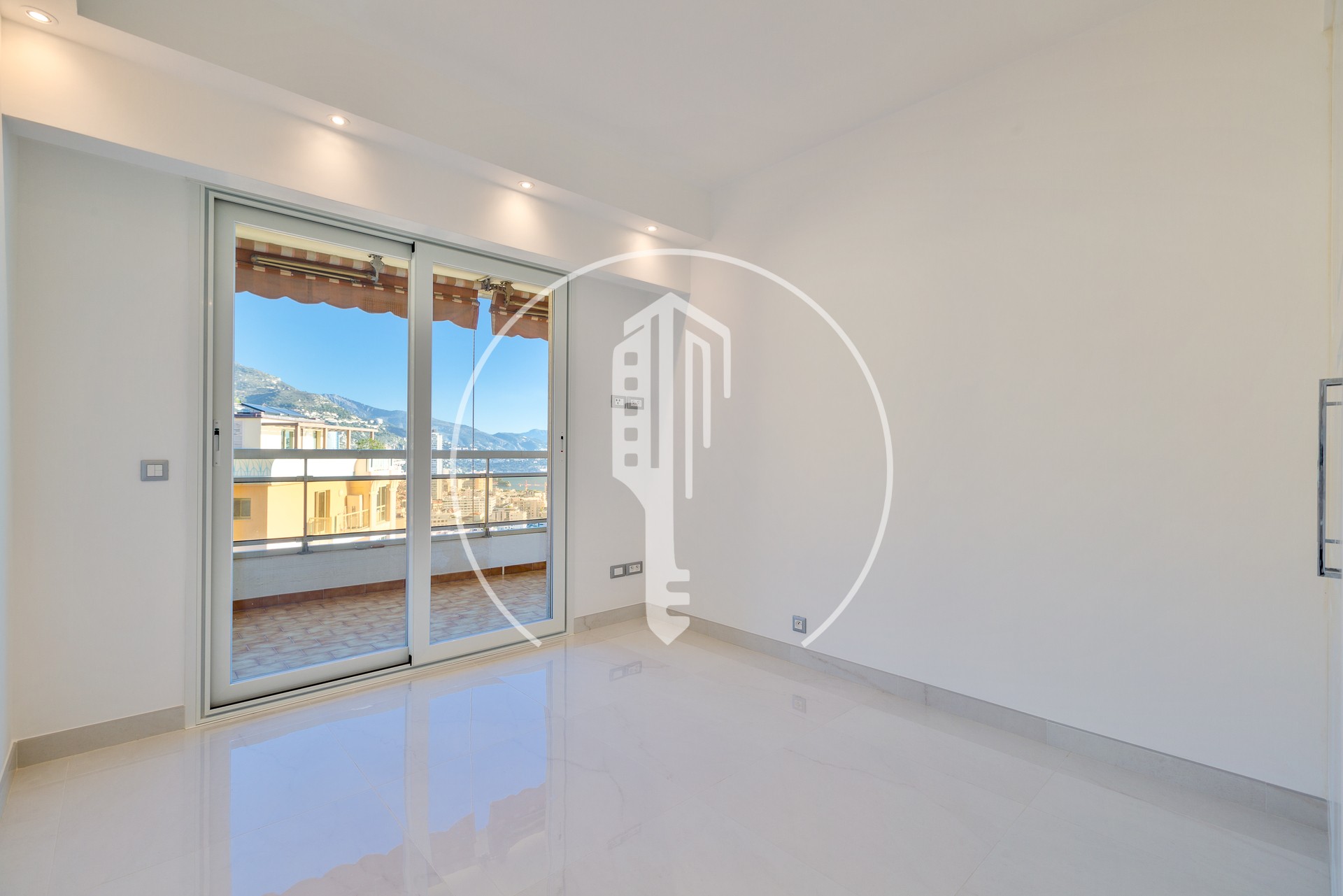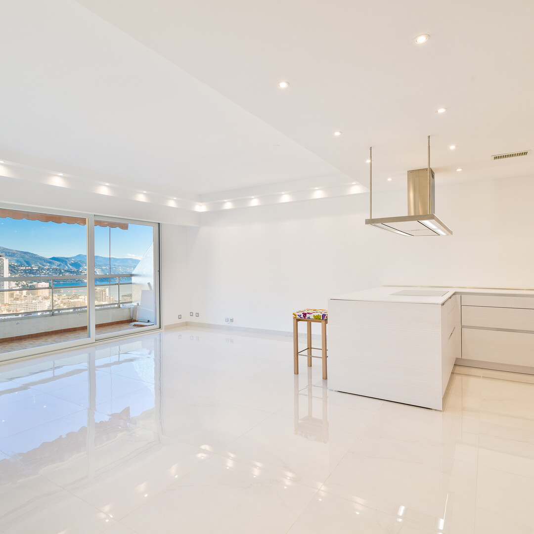 Con una superficie interna di 90,68 mq e una terrazza di 27,70 mq, situato a un piano alto, questo luminoso trilocale gode di una notevole vista panoramica sul mare e sul porto di Monaco.