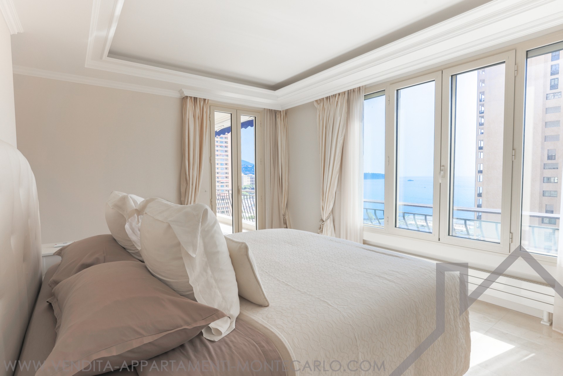 • Un ampio soggiorno che si apre su una splendida terrazza di 11 m² con una vista mozzafiato sul mare e sulle spiagge del Larvotto.