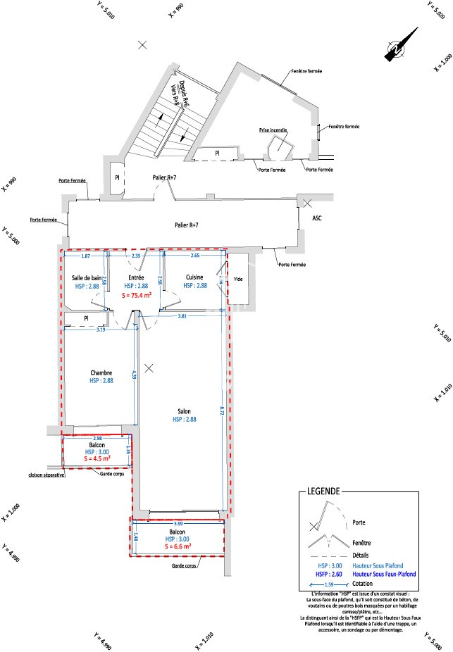 Superficie abitabile : 75.4 m²