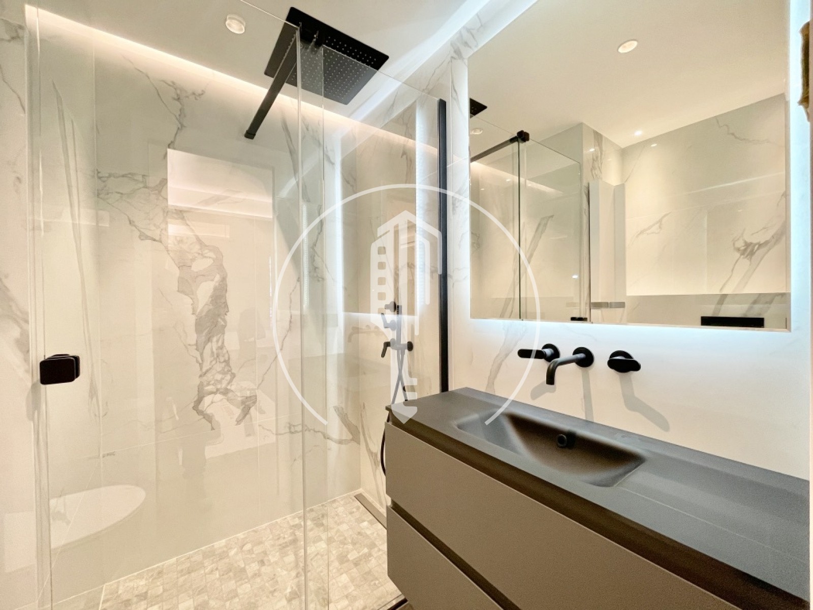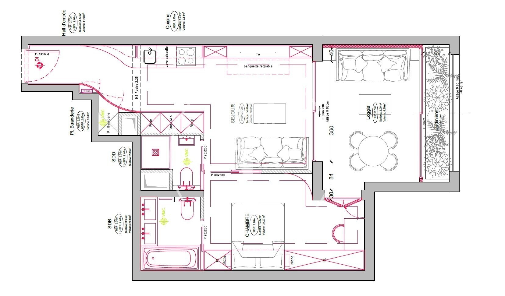 L'appartamento beneficia di aria condizionata reversibile e di numerosi spazi di stoccaggio su misura integrati.