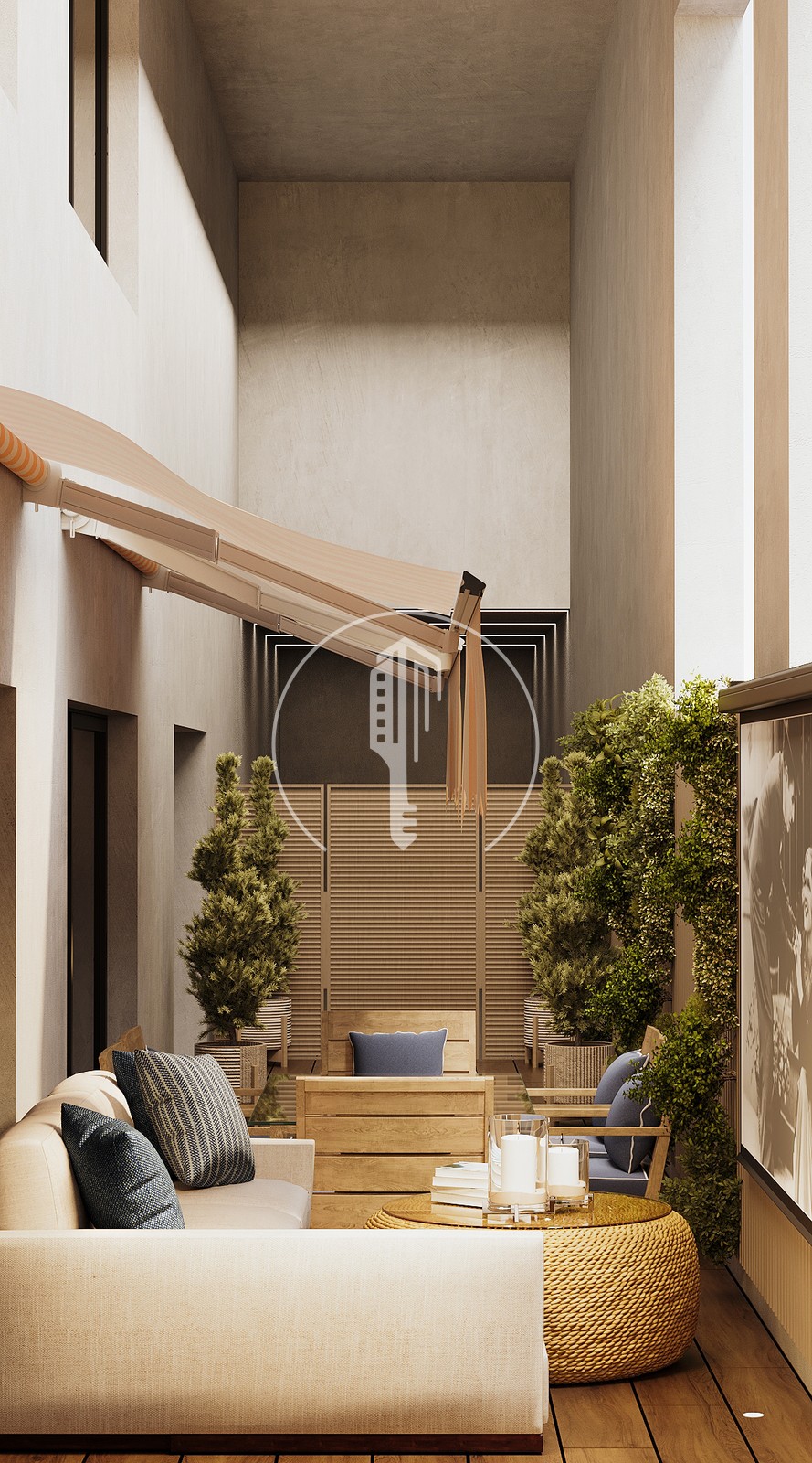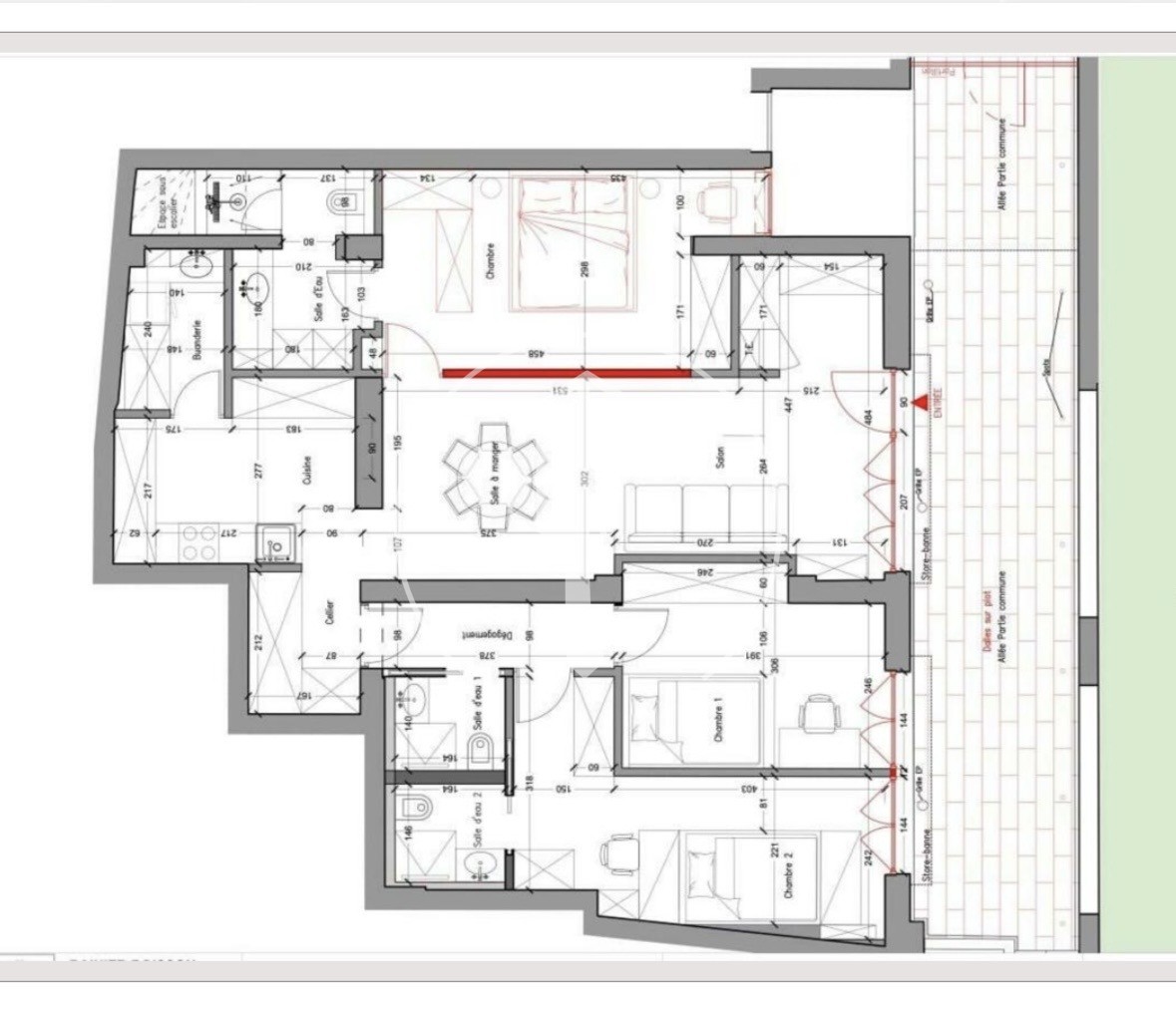 L'appartamento ha un ingresso privato che si apre su un piacevole cortile sicuro. È composto da un ampio soggiorno con sala da pranzo, due camere da letto con possibilità di un terzo, tre bagni, oltre a una cucina americana completamente attrezzata aperta sul soggiorno. Una lavanderia e un ampio spazio di stoccaggio completano la disposizione interna.