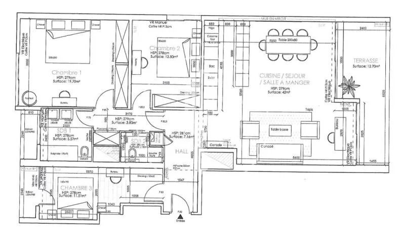 Si compone di un ingresso che conduce all'ampio soggiorno, una cucina a pianta aperta completamente attrezzata, tre camere da letto, un bagno con servizi e un bagno con doccia.